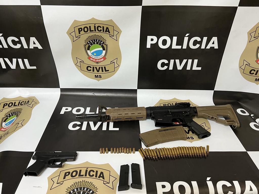 Na madrugada desta quarta-feira (20), o delegado titular da Delegacia de Mundo Novo, Alex Junior da Silva, com apoio da Polícia Militar, prendeu em flagrante um homem de 46 anos suspeito de efetuar diversos disparos de fuzil na área central da cidade. Durante a ação foram apreendidas duas armas de fogo, sendo uma pistola calibre 380 e um fuzil calibre 556, bem como diversas munições intactas e deflagradas dos dois calibres.