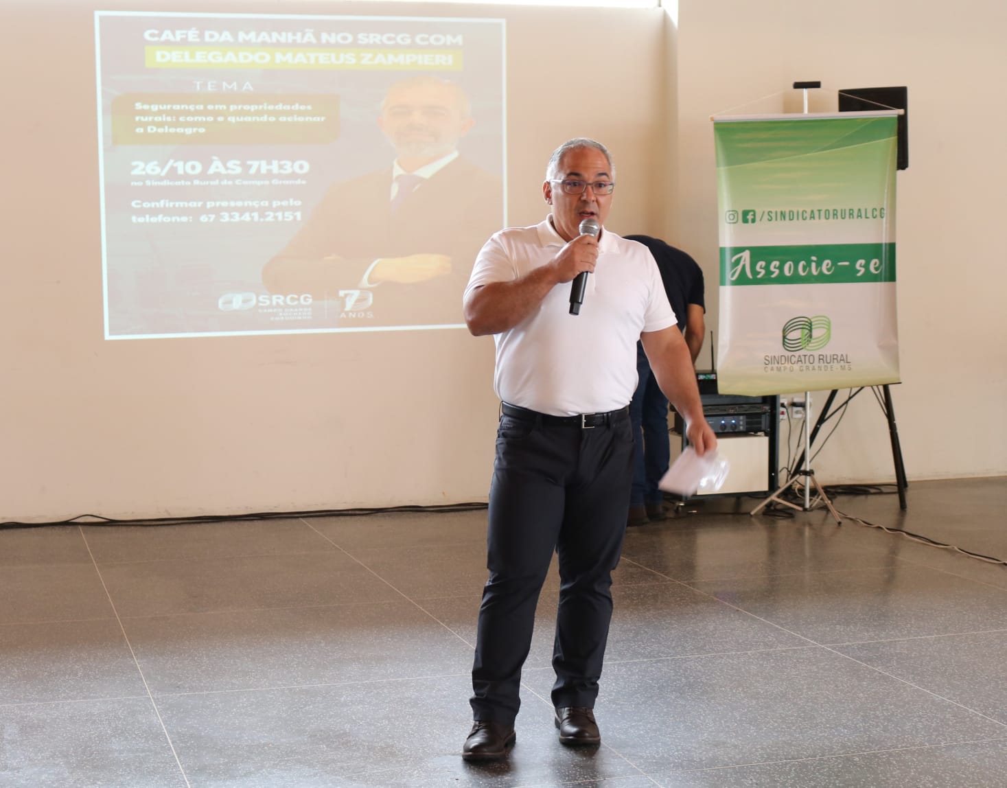 O delegado Mateus Zampieri, titular da Delegacia Especializada de Combate aos Crimes Rurais e Abigeato (DELEAGRO), participou na manhã desta terça-feira, 26/10, de um encontro com produtores rurais. O bate-papo ocorreu na sede do Sindicato Rural de Campo Grande e foi promovido pela entidade com o objetivo de estreitar os laços entre os produtores e a Polícia Civil, através da delegacia recém-criada.