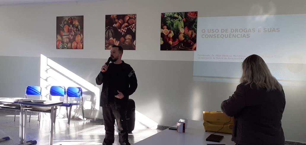 Batayporã (MS): Mediante parceria entre a Escola Estadual Jan Antonin Bata, o delegado de Polícia Civil abordou sobre o uso de substâncias lícitas (bebida alcoólica e cigarro), bem como ilícitas, trazendo, ainda, as consequências legais a elas correlatas.