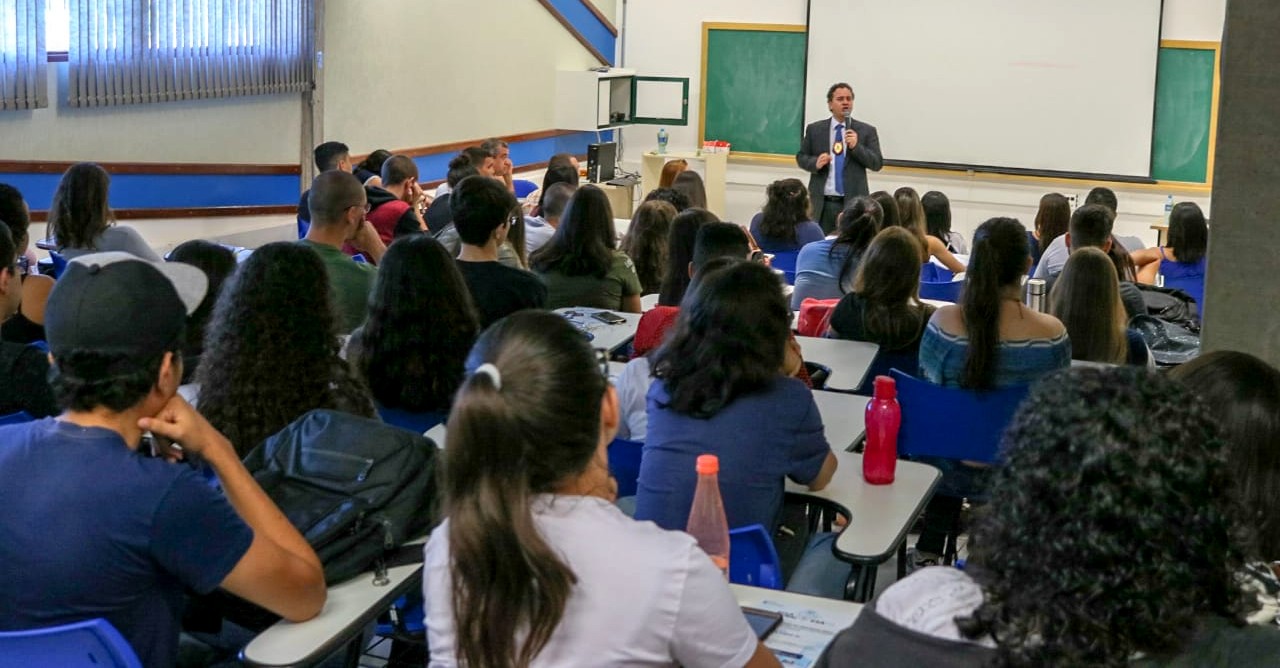 CAMPO GRANDE (MS) – Na manhã de hoje (22), na Universidade Federal de Mato Grosso do Sul, o Delegado de Polícia Civil, Wellington de Oliveira, Coordenador no Departamento de Polícia da Capital, ministrou, para cerca de 120 alunos do 1º,2º e 3º semestre do curso de Direito, palestra sobre a carreira de Delegado.