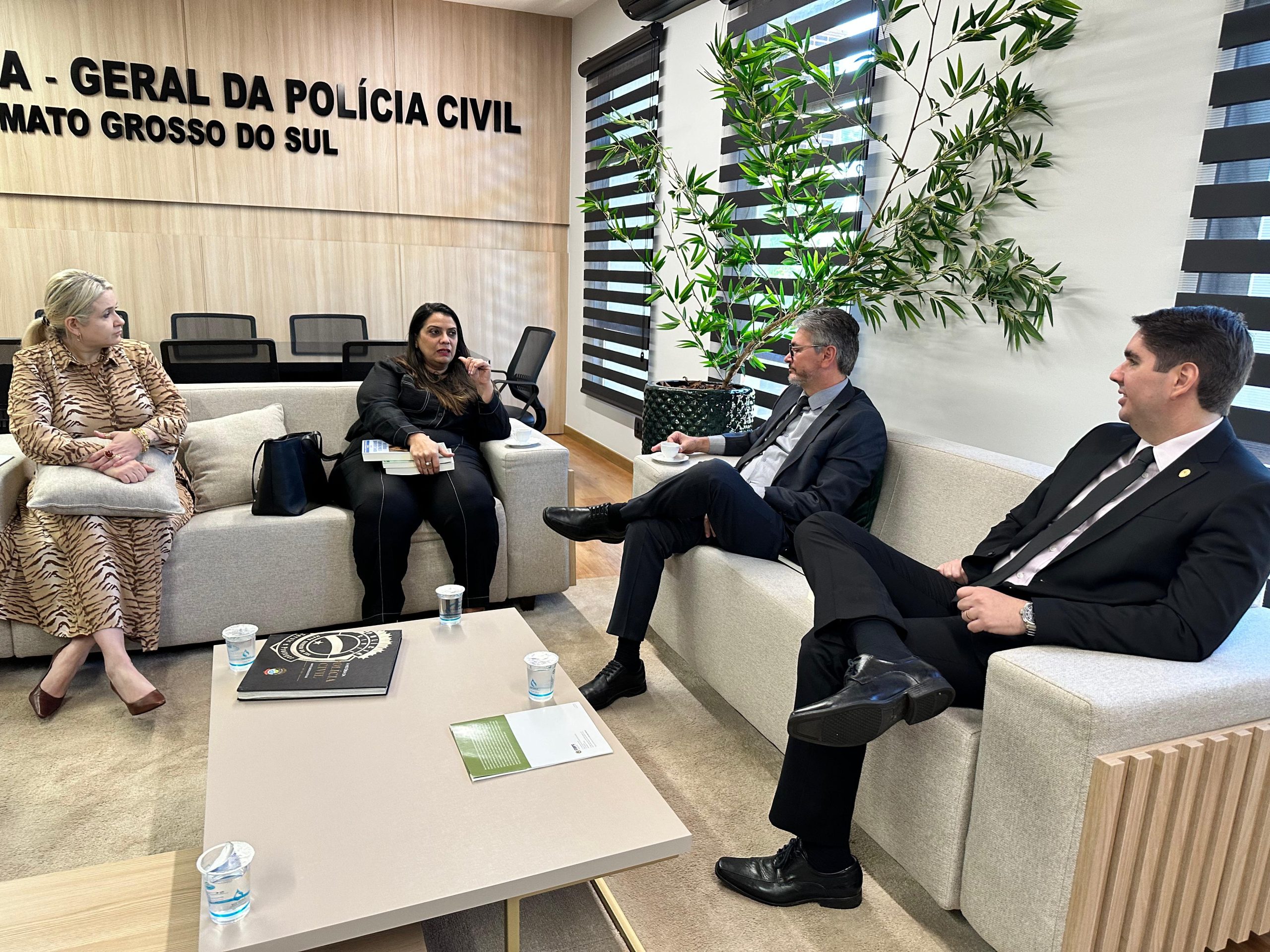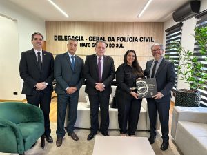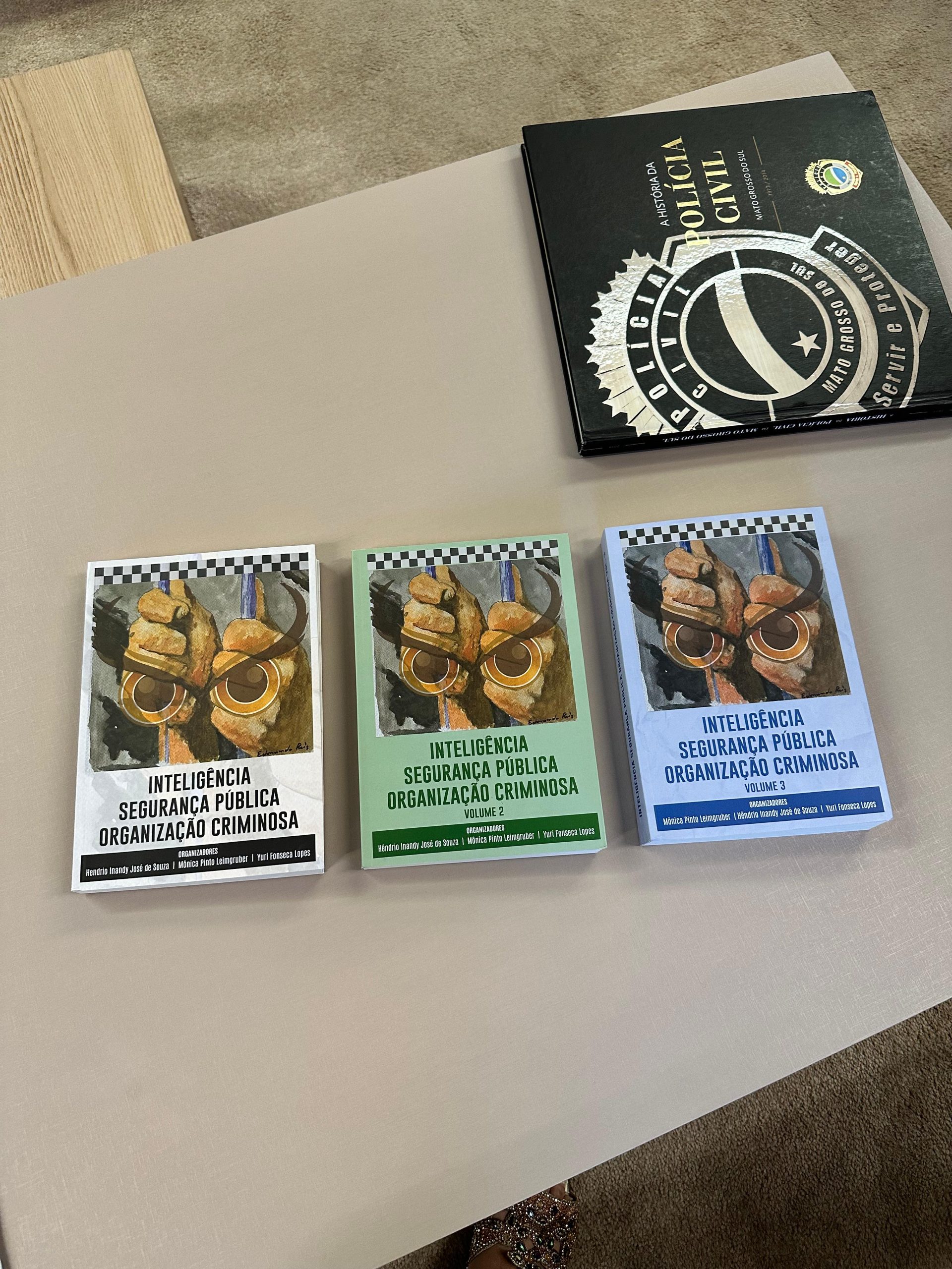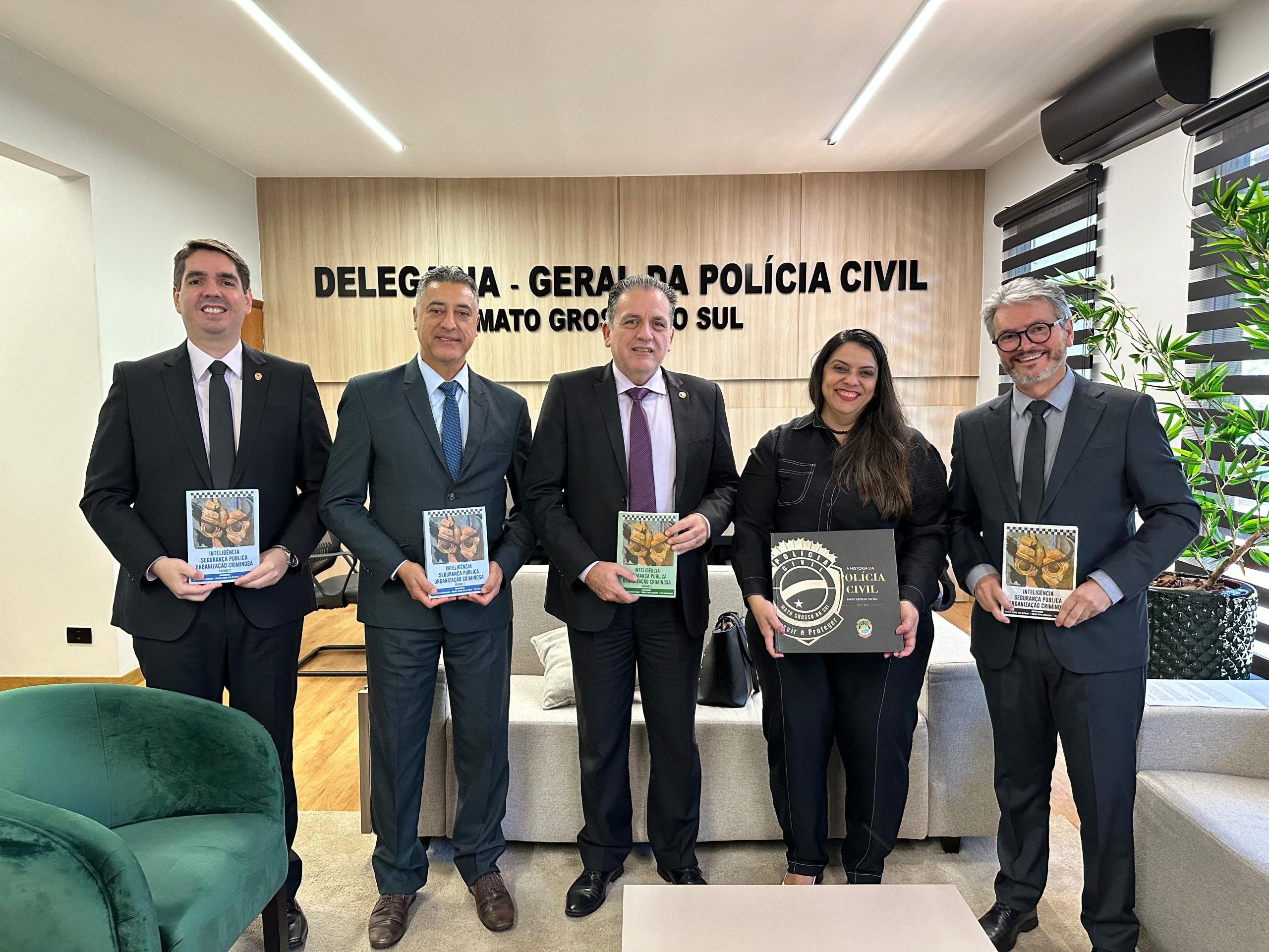 Nesta quarta-feira (24), o Delegado-Geral da Polícia Civil de Mato Grosso do Sul, Lupérsio Degerone Lúcio, recebeu em seu gabinete a Dra. Mônica Leimgruber, Policial Penal do MS. Durante o encontro, Dra. Mônica presenteou o Delegado-Geral com uma coletânea de livros intitulada “Inteligência, Segurança Pública e Organização Criminosa,” volumes 1, 2 e 3.