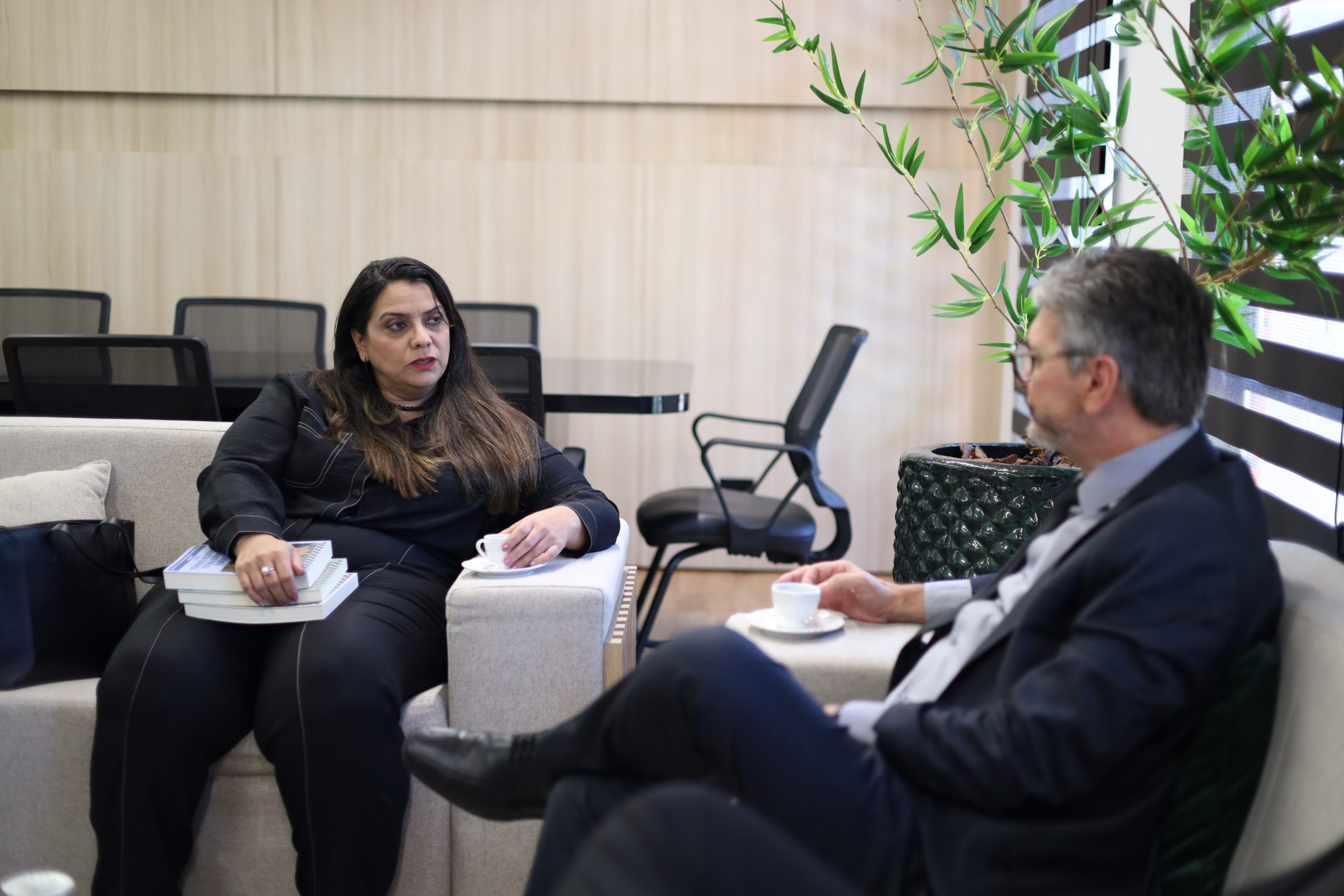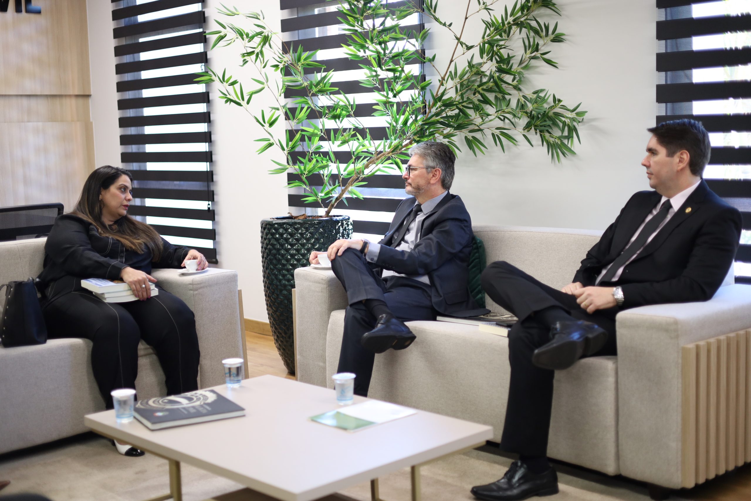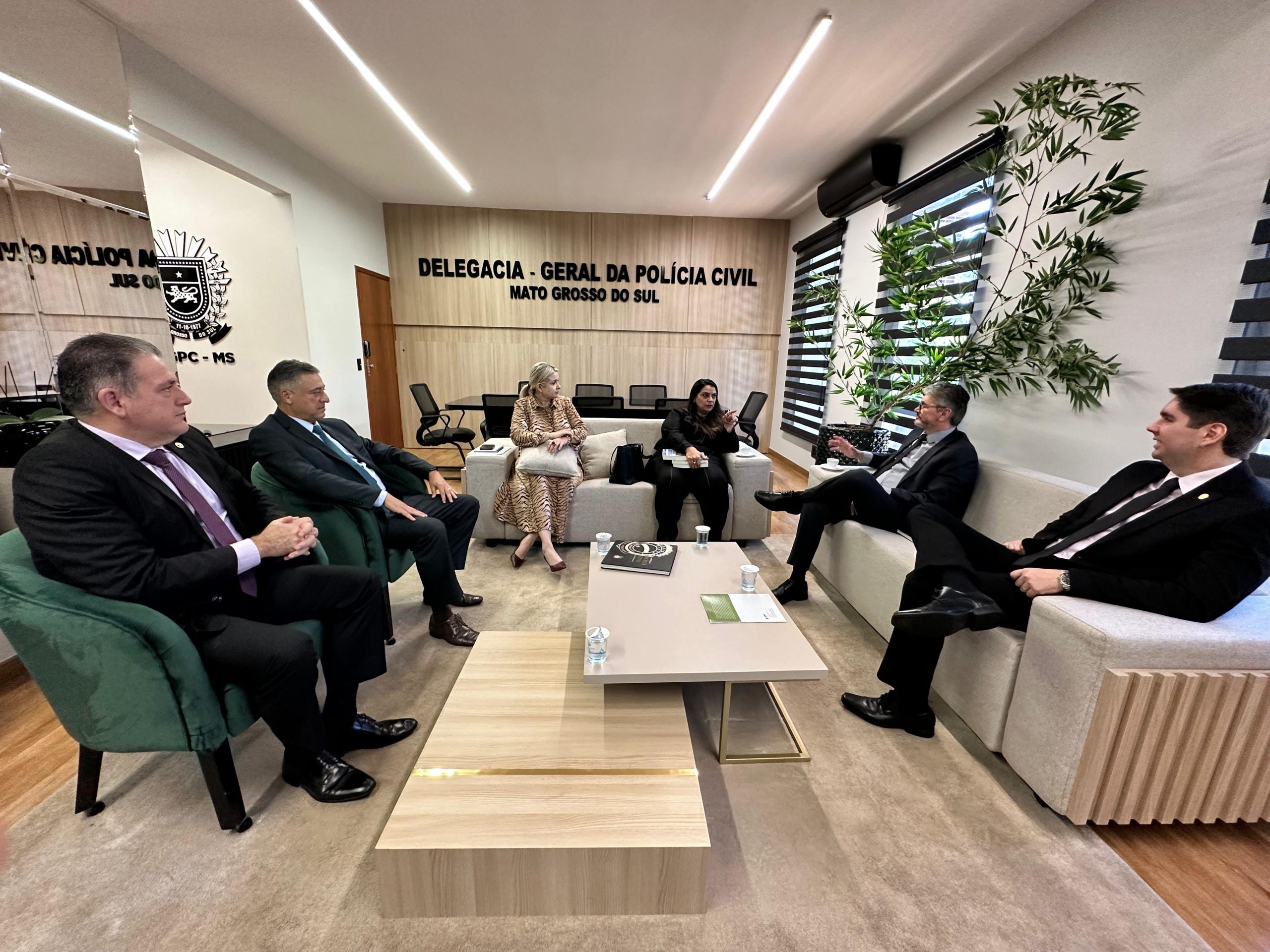 Nesta quarta-feira (24), o Delegado-Geral da Polícia Civil de Mato Grosso do Sul, Lupérsio Degerone Lúcio, recebeu em seu gabinete a Dra. Mônica Leimgruber, Policial Penal do MS. Durante o encontro, Dra. Mônica presenteou o Delegado-Geral com uma coletânea de livros intitulada “Inteligência, Segurança Pública e Organização Criminosa,” volumes 1, 2 e 3.