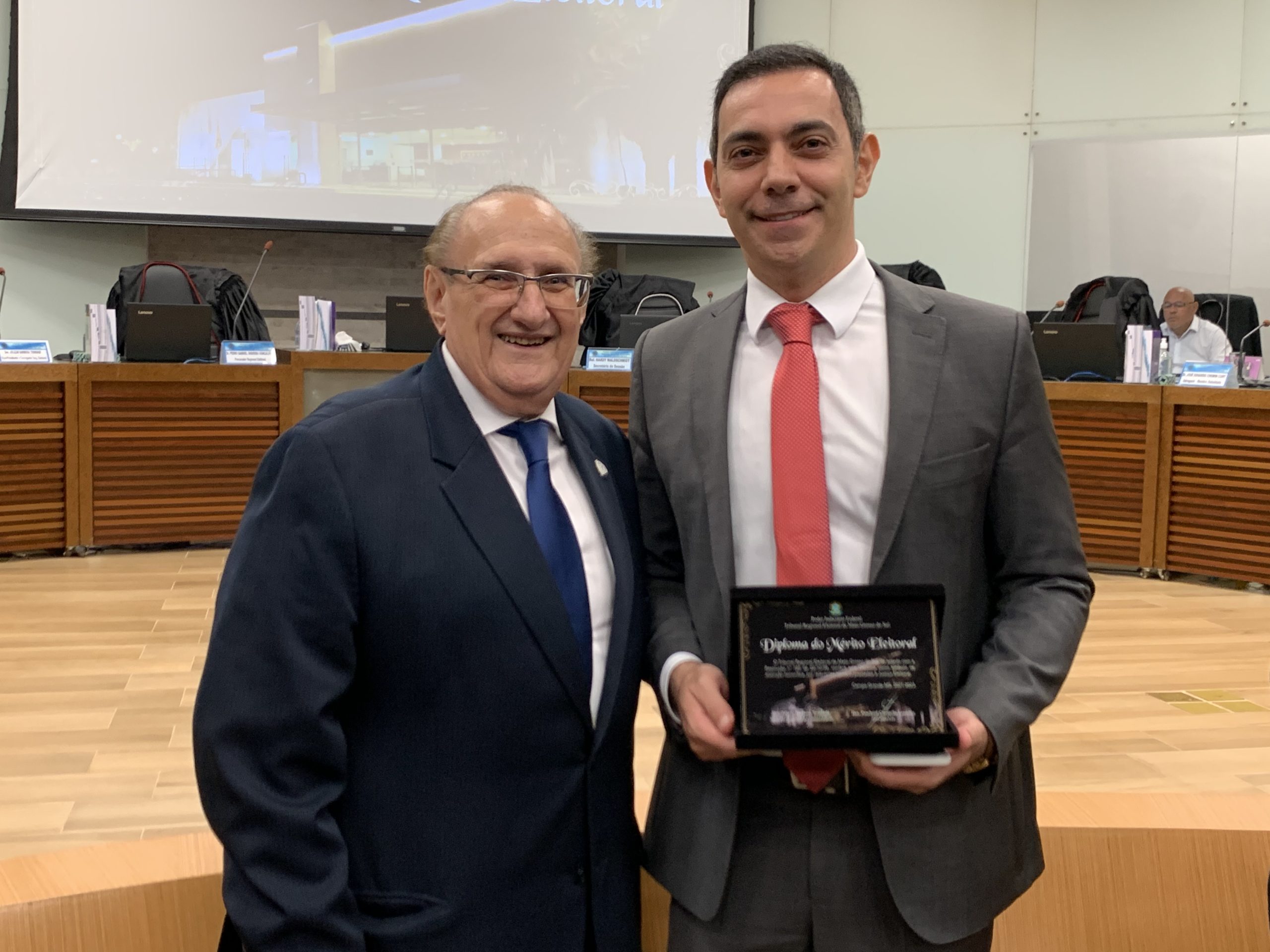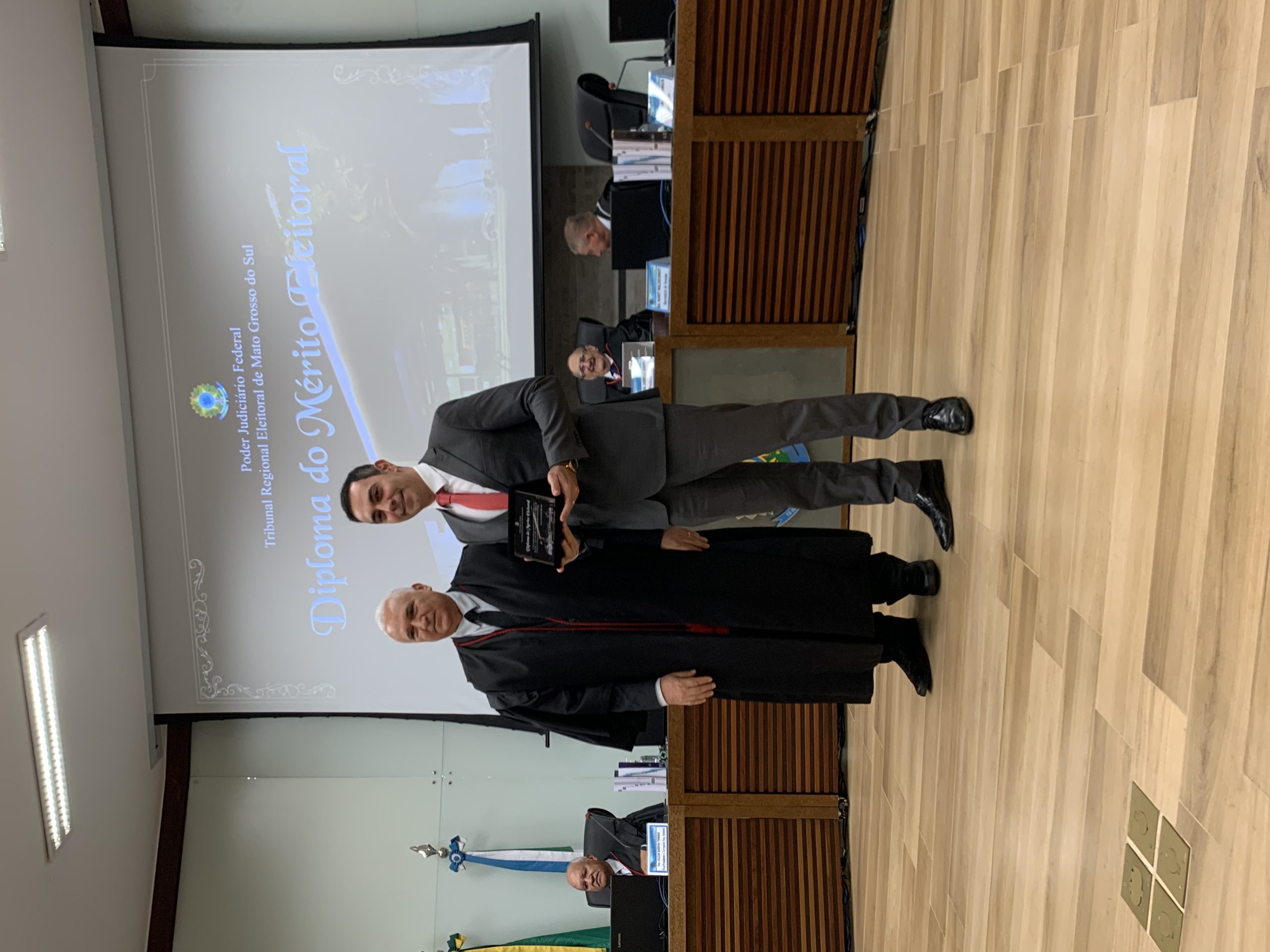 O Delegado-Geral da Polícia Civil, Roberto Gurgel de Oliveira Filho, foi homenageado nesta quarta-feira, 07/12, pelo Tribunal Regional Eleitoral do Mato Grosso do Sul (TRE-MS). A solenidade de outorga da Comenda do Diploma do Mérito Eleitoral aconteceu às 17h30min, no plenário do TRE-MS, no Parque dos Poderes, em Campo Grande-MS.