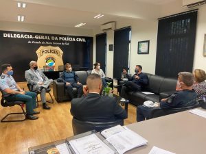 Campo Grande (MS): O Delegado Geral da Polícia Civil, Adriano Garcia Geraldo, recebeu no final da tarde desta segunda-feira (17), membros da gestão de 2021 do Conselho Institucional de Segurança de Campo Grande – COISEC. O Conselho foi instituído em 2018 com a finalidade de facilitar o diálogo entre as principais instituições atuantes no sistema de Segurança Pública da capital, visando construir soluções.