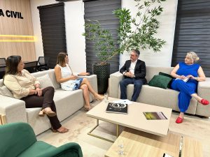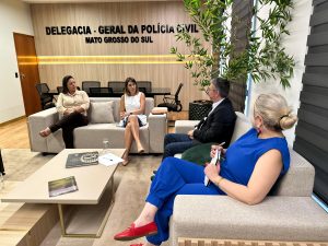 Nesta sexta-feira (03), o Delegado-Geral da Polícia Civil, Lupérsio Degerone Lúcio, recebeu em seu gabinete na Delegacia-Geral a Secretária de Estado da Cidadania, Viviane Luiza da Silva, que também é antropóloga. A reunião contou com a presença da Delegada Maíra Pacheco Machado, Coordenadora do Núcleo Institucional da Cidadania (NIC) da PCMS, que recentemente foi empossada pela Secretária de Estado da Cidadania como membro titular do Conselho Estadual da Juventude, e da Delegada Silvia Elaine Giradi dos Santos, que foi removida hoje para a Assessoria de Gestão de Processo e Planejamento da PCMS.