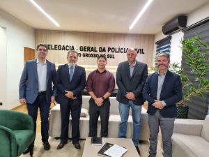 Nesta sexta-feira (10), o Delegado-Geral da Polícia Civil de Mato Grosso do Sul, Lupérsio Degerone Lúcio, recebeu em seu gabinete a visita da Associação dos Agentes de Polícia Científica do Estado (AAPC/MS). O encontro teve como objetivo discutir questões pertinentes às carreiras policiais e segurança pública no estado.