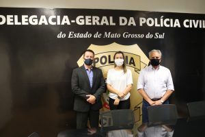 Campo Grande (MS): Na manhã desta quinta-feira (25), o Delegado Geral da Polícia Civil de Mato Grosso do Sul, Adriano Garcia Geraldo, recebeu a visita do Diretor-Presidente do Departamento Estadual de Trânsito (Detran), Rudel Espíndola Trindade Júnior e da Diretora de Veículos do Departamento, Loretta Figueiredo.