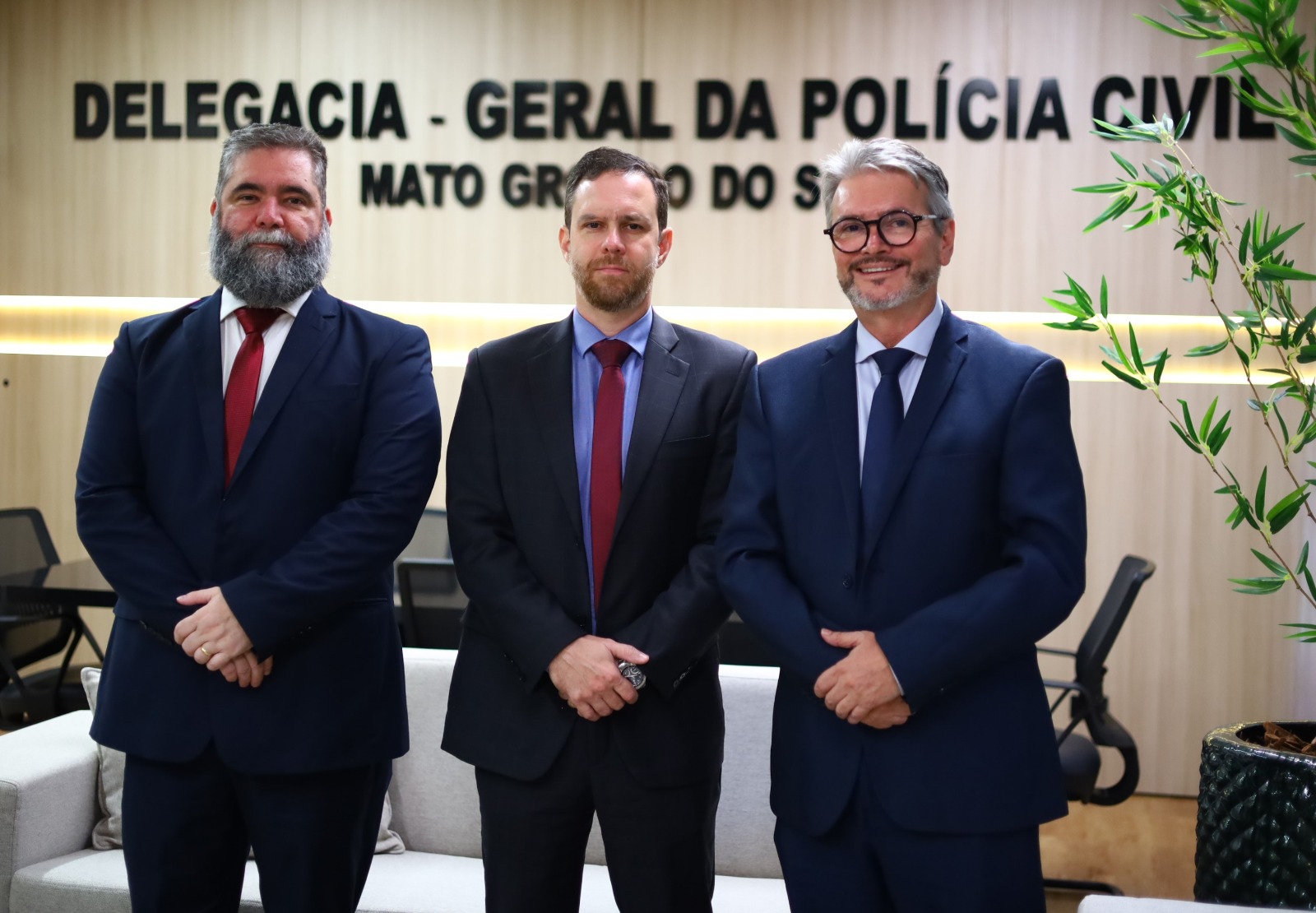 Delegado-Geral da Polícia Civil recebe visita do Superintendente e do Delegado Regional da Polícia Federal no Mato Grosso do Sul para alinhamento da parceria no combate ao crime organizado