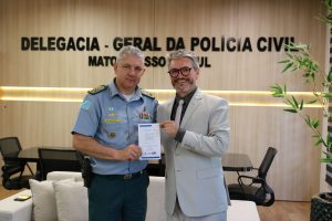 Nesta terça-feira, 21/05, o Delegado-Geral da Polícia Civil, Lupérsio Degerone Lucio, recebeu a visita institucional do Comandante-Geral da Polícia Militar, coronel Renato Garnes, que o parabenizou pelo novo cargo e desejou-lhe sucesso em sua gestão. Degerone agradeceu pelas felicitações e relembrou dos trabalhos conjuntos realizados no interior do estado, destacando a importância da continuidade da colaboração entre as duas instituições, em prol da população sul-mato-grossense.