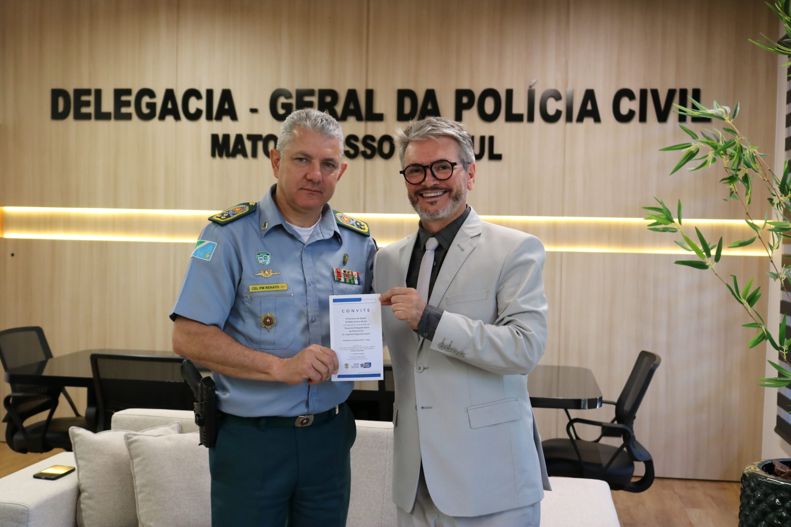 Os dois líderes aproveitaram a oportunidade para traçar estratégias de cooperação no combate à criminalidade. Na ocasião, o Delegado-Geral entregou ao coronel Renato, o convite para sua posse oficial, que está marcada para o próximo dia 24/05, às 11 horas, na sede da Associação dos Delegados de Polícia (Adepol).