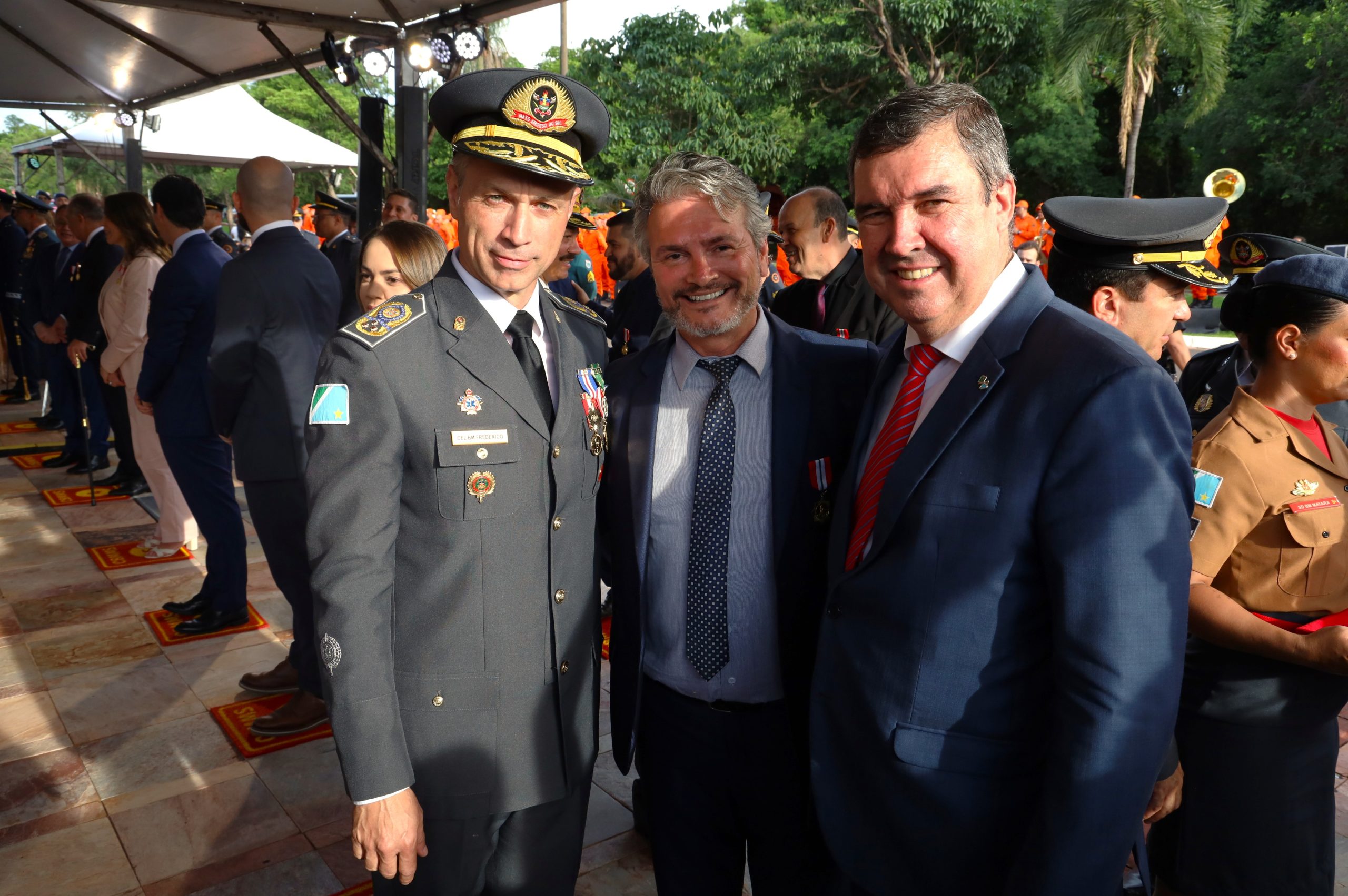 O Delegado-Geral da Polícia Civil de Mato Grosso do Sul – Lupérsio Degerone Lúcio foi homenageado, nesta terça-feira (2), com a medalha ‘Imperador Dom Pedro II’, do Corpo de Bombeiros Militar de Mato Grosso do Sul, em solenidade alusiva ao Dia do Patrono do Corpo de Bombeiros Militar, que contemplou a formatura dos oficiais da turma Caiman e de soldados temporários.