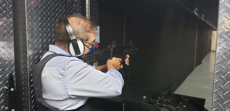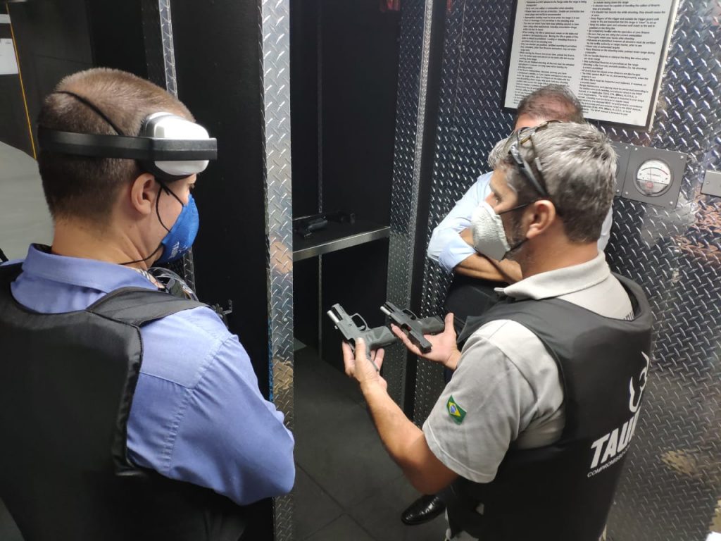 Os policiais foram recebidos pelo presidente da empresa, Salesio Nuhs, e convidados a testar os armamentos no estande de tiro que fica no interior da fábrica.