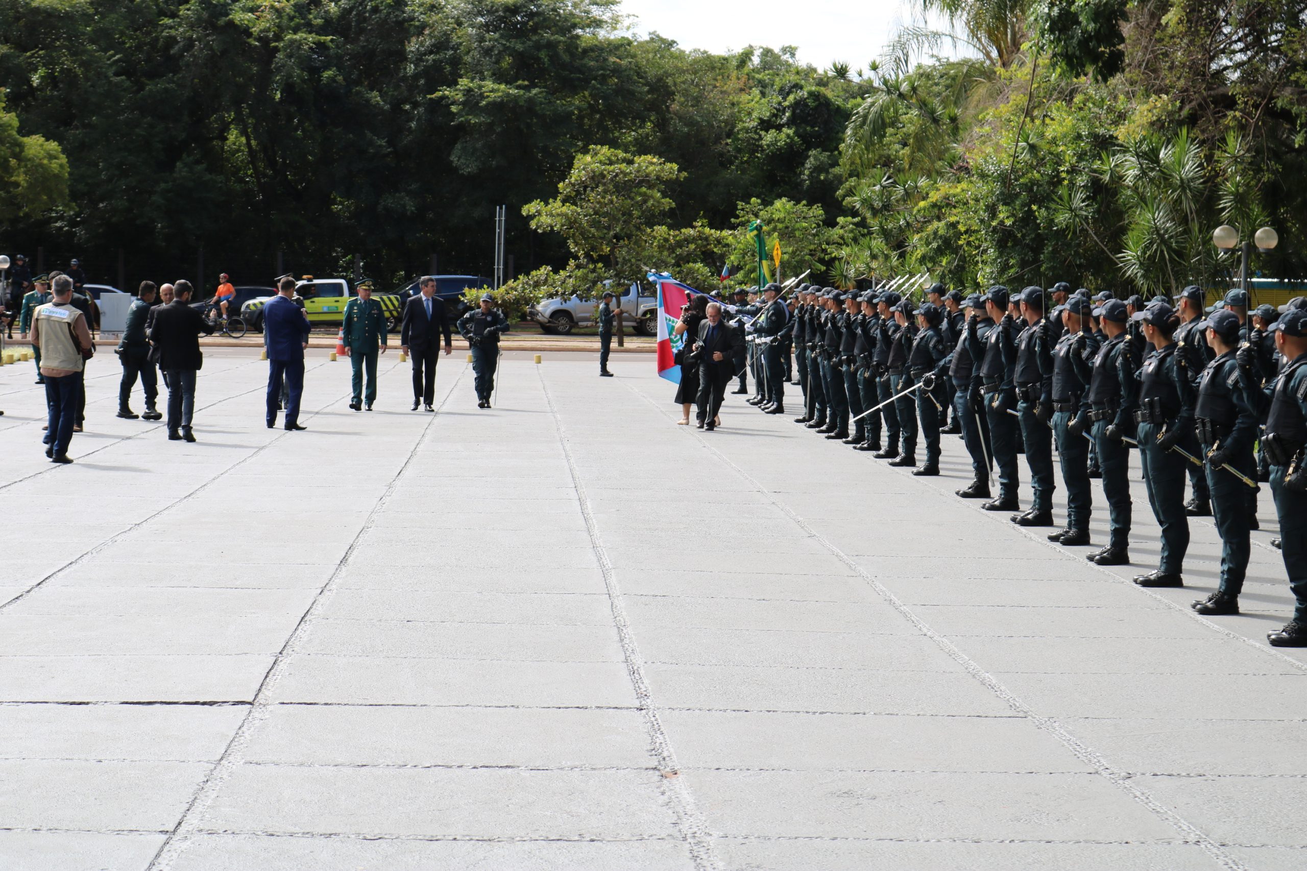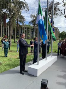 A solenidade teve início às 8h45min com revista à tropa, feita pelo governador Eduardo Riedel. Na sequência houve o hasteamento da bandeira no pavilhão externo, do palácio Guaicurus e posteriormente a sessão inaugural, com apresentação da mensagem do governador aos novos deputados e com discursos do presidente da Casa de Leis, deputado Gerson Claro e dos líderes de bancadas, que fizeram agradecimentos pelos votos recebidos e falaram sobre a disposição em fazer o melhor para a população sul-mato-grossense.