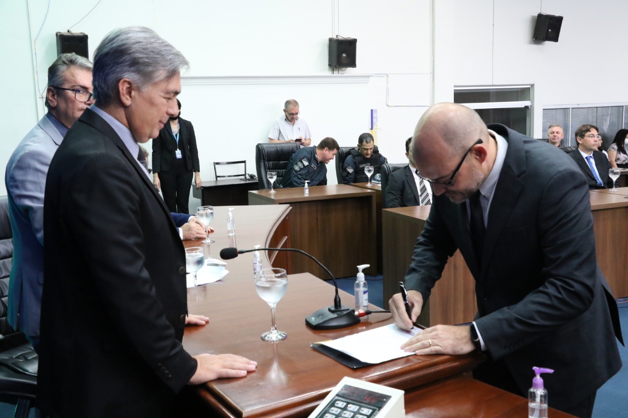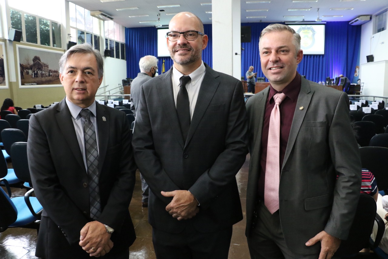 O Delegado-Geral da Polícia Civil, Roberto Gurgel de Oliveira Filho, participou na manhã desta sexta-feira, 08/04, da cerimônia de posse do novo Delegado-Regional do município de Dourados-MS, Adilson Stiguivitis Lima. A solenidade aconteceu na Câmara Municipal e contou com diversas autoridades locais e estaduais, dentre elas o Secretário de Justiça e Segurança Pública, Antônio Carlos Videira e o representante da Assembleia Legislativa do Mato Grosso do Sul, deputado Barbosinha.