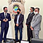 Corumbá (MS): O Delegado Geral da Polícia Civil, Adriano Garcia Geraldo esteve, na manhã desta terça-feira (18), em reunião na sede da Delegacia Regional da Polícia Civil de Corumbá, juntamente com o Diretor do Departamento do Interior, Delegado Lupércio Degerone e o Delegado Regional de Corumbá, Alex Sandro Antônio Peixoto, entre outros delegados, tratando de pautas relacionadas à segurança.