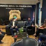 Campo Grande (MS): O Delegado Geral da Polícia Civil, Adriano Garcia Geraldo, recebeu em seu gabinete, na manhã desta segunda-feira (17), representantes do Consulado Geral dos EUA, no Brasil, para tratativas de aproximação e oferecimento de curso de capacitação nas áreas de fraudes documentais e em passaportes, identificação de criminosos, além de auxiliar na ligação entre as agências americanas e brasileiras de polícia.