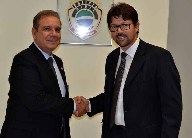 CAMPO GRANDE (MS): O Delegado Geral da Polícia Civil do Mato Grosso do Sul – Dr. Marcelo Vargas Lopes recebeu em seu gabinete, na tarde desta quarta-feira (26), o Delegado Cleverson Alves dos Santos e a representante do projeto Caçadores de Bons Exemplos, Márcia Belo. No Mato Grosso do Sul, 17 projetos receberam o prêmio criado para dar destaque a boas ações e Dr. Cleverson – idealizador do projeto – foi homenageado pelo ‘Costa Rica Sem Drogas’.