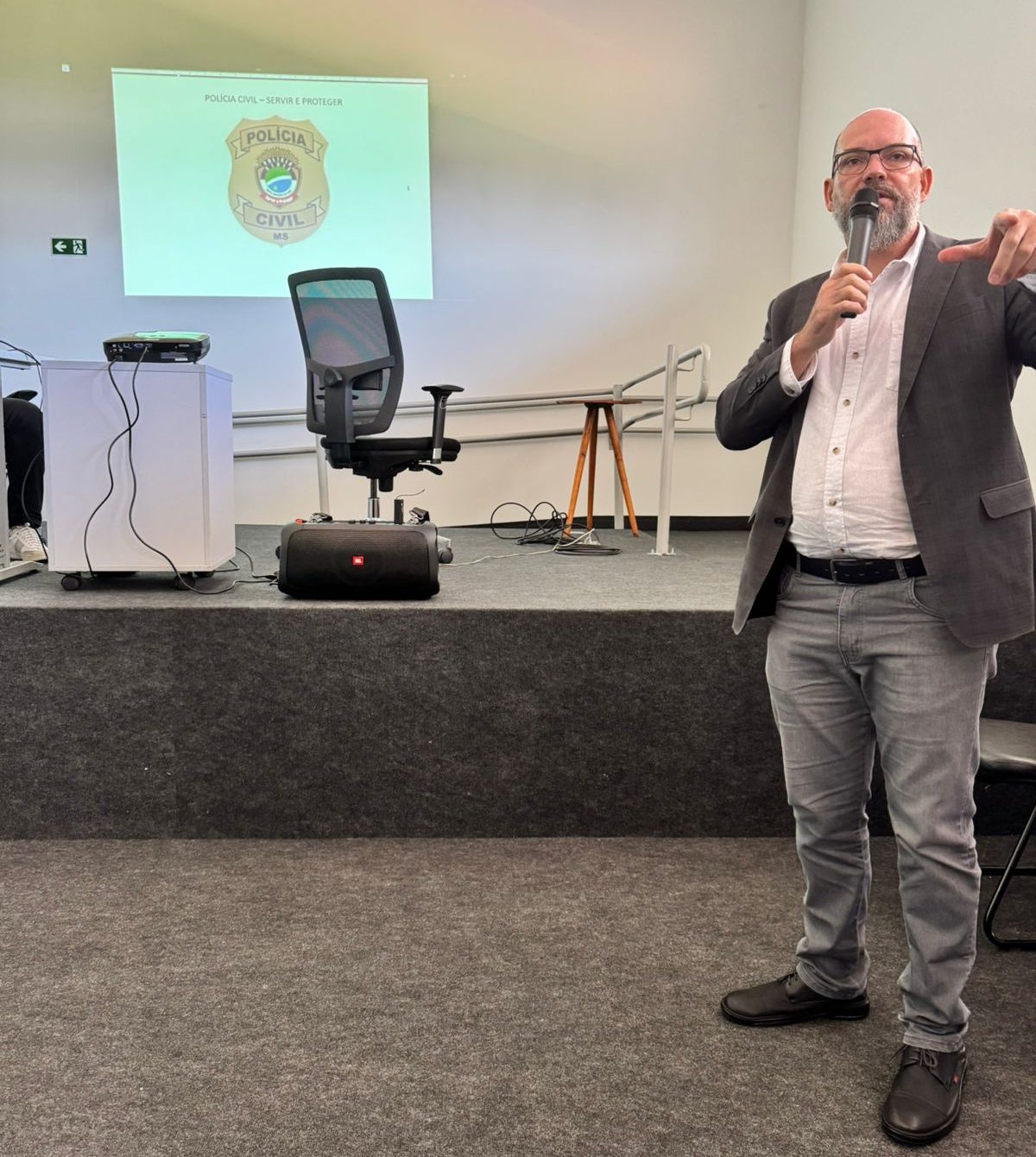 Neste sábado (28), o Delegado Regional da Polícia Civil em Dourados, Adilson Stiguivitis Lima, proferiu uma palestra para alunos do curso de Pós-Graduação lato sensu em segurança pública e fronteiras da Universidade Estadual de Mato Grosso do Sul – UEMS.