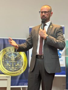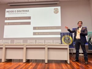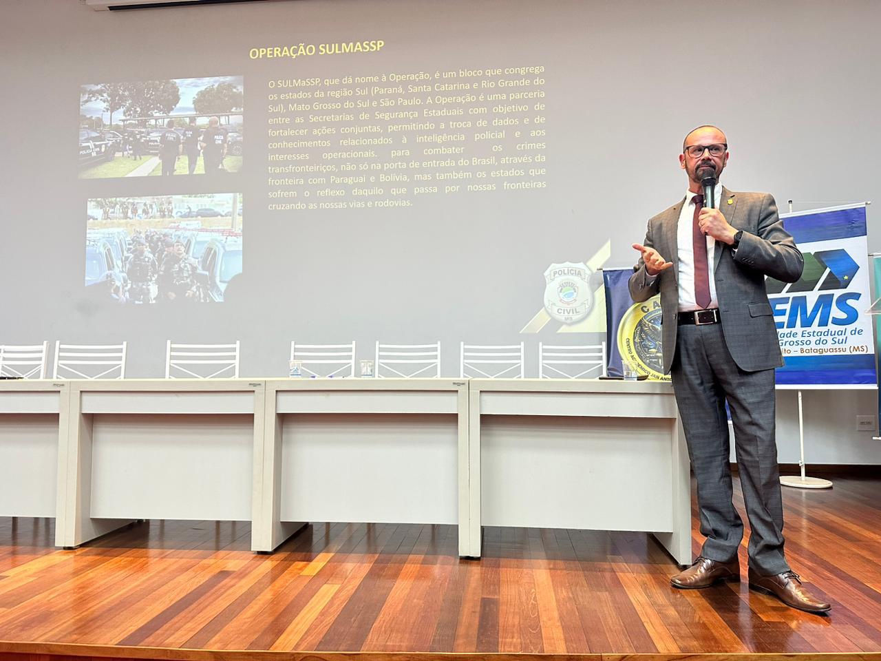 O evento contou com a presença do Diretor do Departamento de Gestão de Pessoal da PCMS, delegado Nilson Fonseca Martins, que apresentou uma ampla perspectiva sobre a segurança pública, discorrendo sobre os fundamentos constitucionais da área e sobre o enfrentamento ao crime organizado. Além disso, mostrou dados que colocam Mato Grosso do Sul em destaque no ranking nacional de solução de inquéritos policiais.