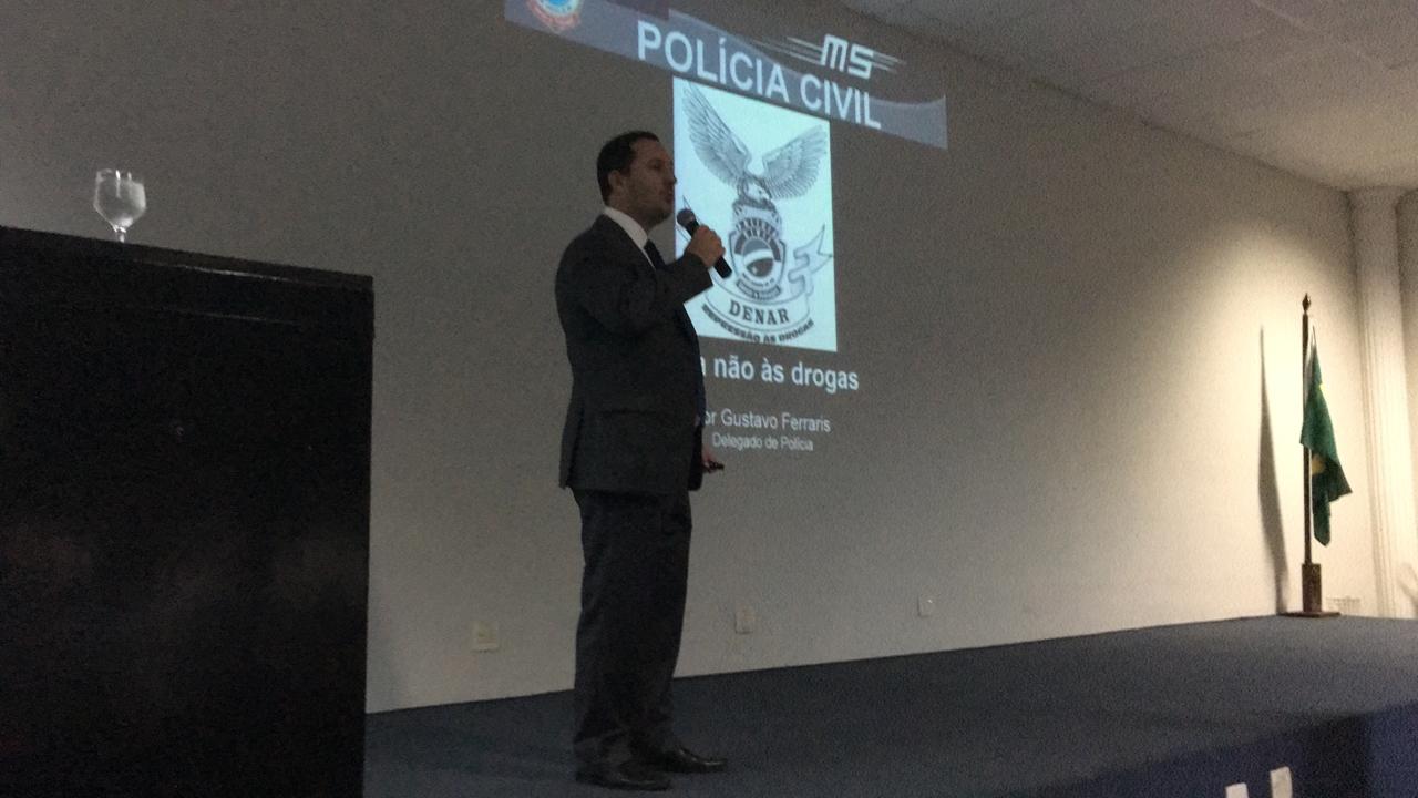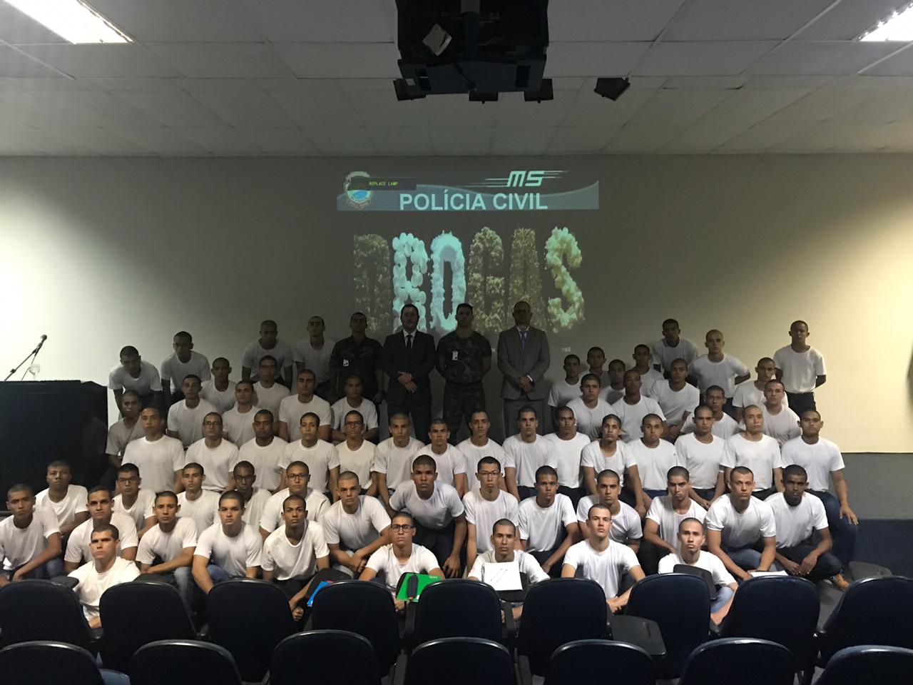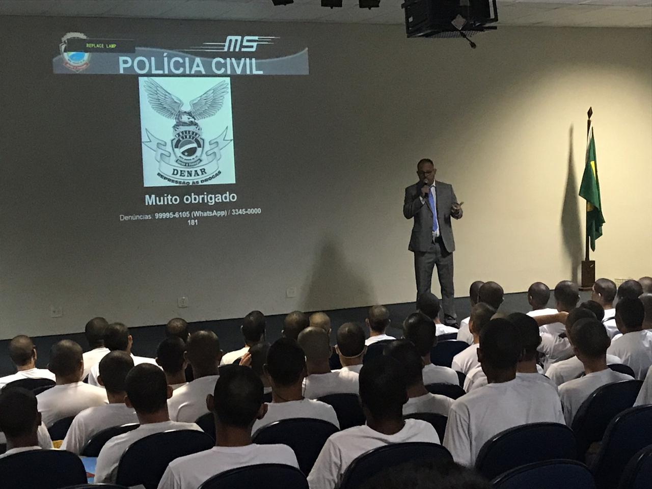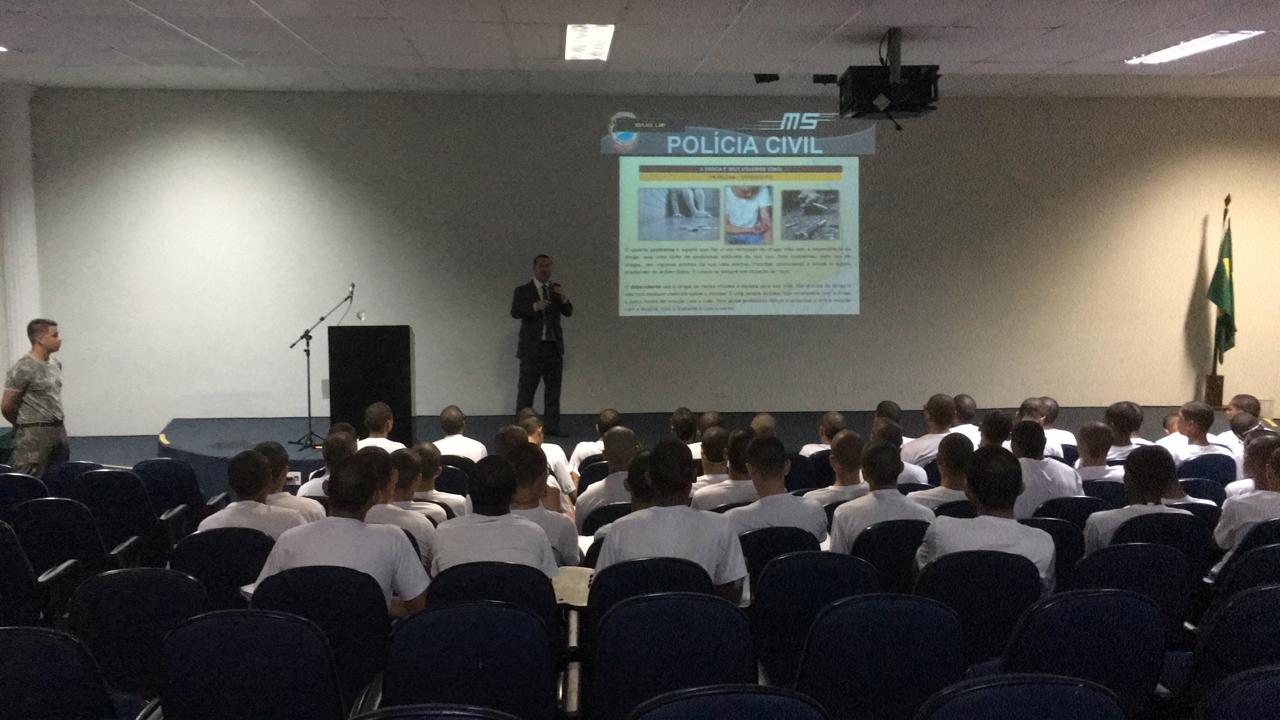 Campo Grande (MS): Na manhã desta terça-feira (13), o delegado titular da Delegacia Especializada de Repressão ao Narcotráfico – Denar, Gustavo Ferraris e o delegado Hoffman D´Ávila, ministraram palestra aos alunos do 2º Curso de Formação de Soldados 2019, na antiga Base Aérea, atual Ala 5, com o tema: identificação dos malefícios e implicações sociais e profissionais quanto ao uso de entorpecentes.