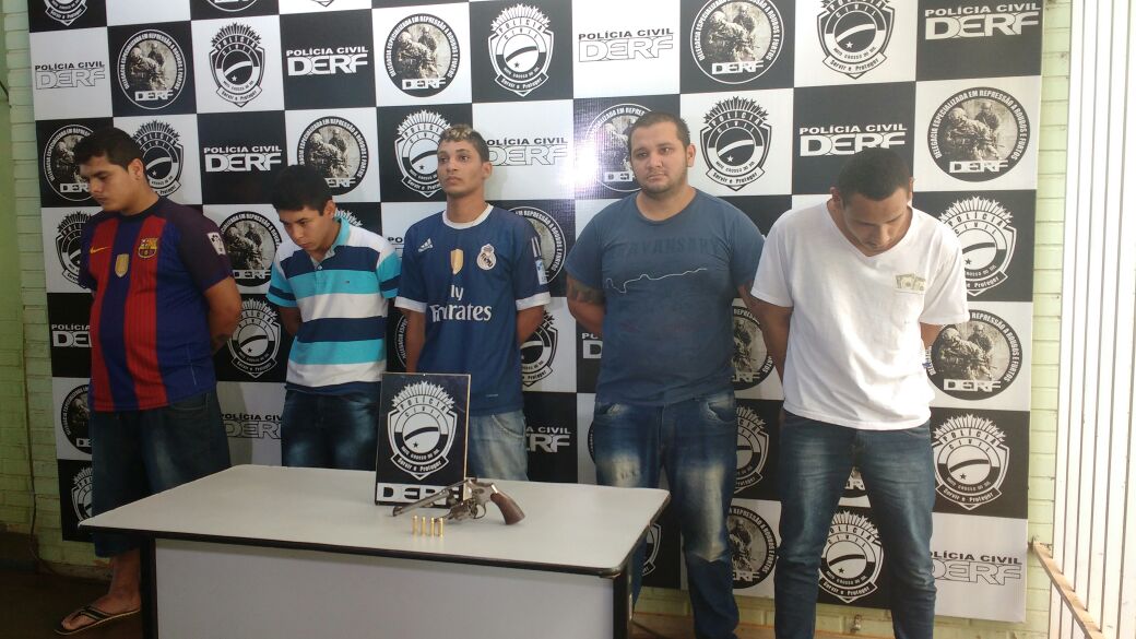 CAMPO GRANDE (MS): A Delegacia Especializada na Repressão aos Crimes de Roubos e Furtos (DERF) conseguiu esclarecer uma série de roubos e furtos praticados em Campo Grande no mês de maio deste ano. Foram indiciados pelos crimes: Jean Albert da Silva Jara Lemes (19), Chrystian Ferraz Alves (18), Geraldo Figueira Mendonça (28), Hericlys Felipe Mendes Aros (21) e Thiago Alfonso Riquelme (20).