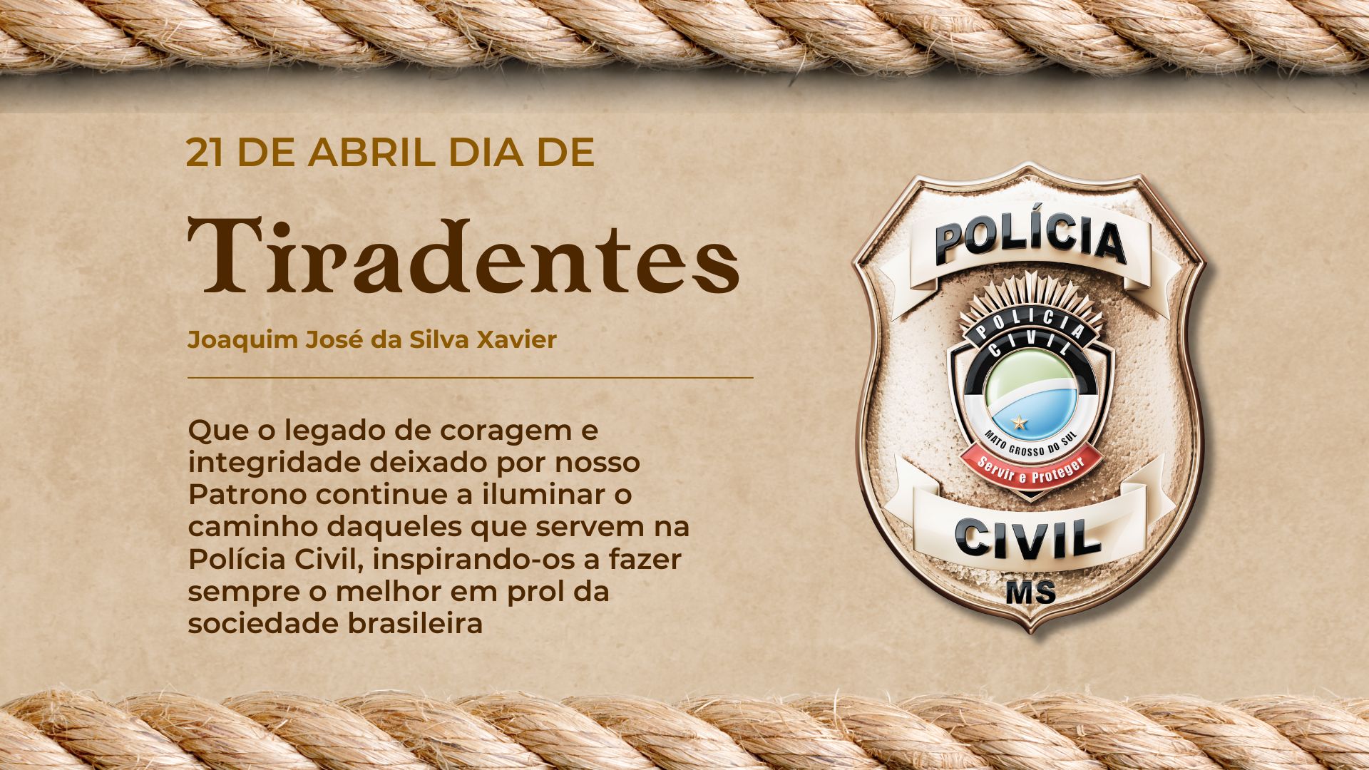 Portanto, neste 21 de abril, unamo-nos em homenagem a Tiradentes e a todos aqueles que dedicam suas vidas à proteção e à justiça. Que o legado de coragem e integridade deixado por nosso patrono continue a iluminar o caminho daqueles que servem na Polícia Civil, inspirando-os a fazer sempre o melhor em prol da sociedade brasileira.