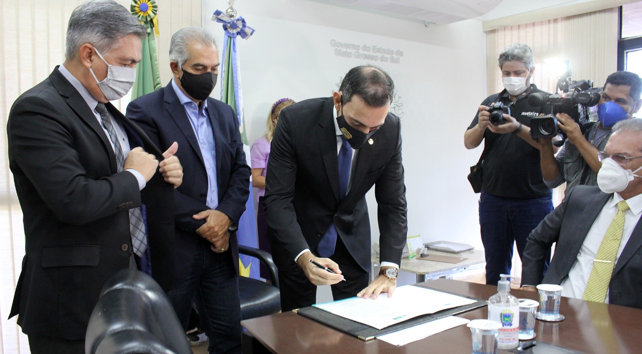 A posse do novo Delegado-Geral foi realizada ontem (22) em cerimônia que contou com a presença de diversas autoridades, entre elas o governador Reinaldo Azambuja, o secretário de Justiça e Segurança Pública Antônio Carlos Videira e a Delegada-Geral-Adjunta da Polícia Civil, Rozeman Geise Rodrigues de Paula.