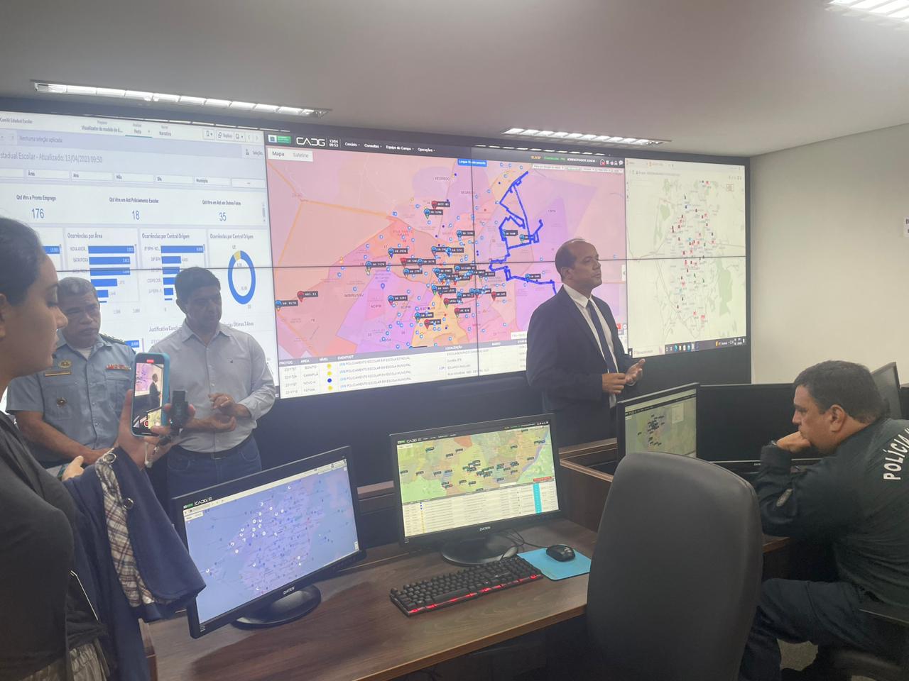 O diretor do Departamento de Inteligência Policial (DIP), da Polícia Civil, delegado Odorico Ribeiro Mendonça e Mesquita, participou na manhã desta quinta-feira, 13/04, de uma coletiva de imprensa que aconteceu no Centro Integrado de Comando e Controle de Mato Grosso do Sul. O objetivo do encontro foi apresentar aos jornalistas como funciona o monitoramento que já é feito desde agosto de 2022, nas escolas da capital e interior.
