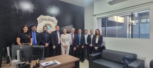 Na tarde desta terça-feira (04), o recém empossado Diretor de Polícia do Interior (DPI), Jairo Carlos Mendes, juntamente com o Coordenador de Operações do DPI, João Reis Belo e o Superintendente de Segurança Pública da SEJUSP, Tiago Macedo dos Santos realizaram uma visita de trabalho à Delegacia Regional de Polícia (DRP) de Aquidauana, onde se reuniram com o Delegado Regional – Amylcar Eduardo Paracatu Romero e os Delegados: Ronaldo Marcos Jacob (1ª DP Aquidauana), Isabelle Sentinello (DAM Aquidauana), Tatiana Zyngier (DP Anastácio), Daniel Francisco Mercado Dantas (DP Miranda), Marina Lemos Monteiro Conceição (DP Bodoquena) e Dalmar Carlos de Oliveira Filho (DP Dois Irmãos do Buriti).
