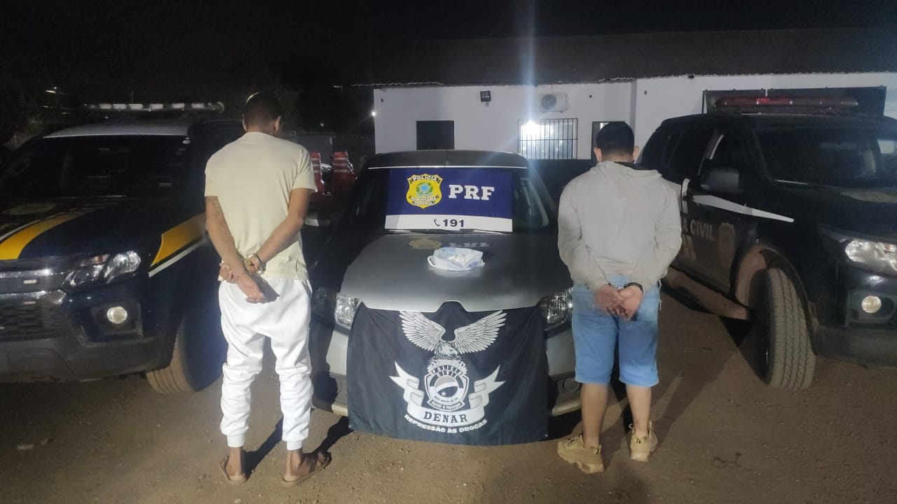 Durante os trabalhos, os ocupantes do veículo, dois homens com idade de 40 e 26 anos apresentaram versões divergentes e conflitantes aos questionamentos feitos pelos agentes públicos, entrando em contradição diversas vezes, razão pela qual houve aprofundamento na fiscalização. Ao abrirem o porta-luvas do carro, os policiais localizaram um volume de cocaína, que totalizou 152g.