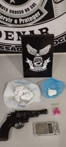 Iniciado o procedimento do flagrante, foi apurado que havia mais drogas na residência dos conduzidos, em Ribas do Rio Pardo/MS, de modo que, no início da manhã desta terça-feira, 29/08, uma equipe policial foi até o local, situado à Rua Ribeirão Dourado, Parque Estoril, naquela cidade, onde encontraram, num dos cômodos, dentro de um armário, mais oito pinos de cocaína prontos para serem comercializados, pesando o total de 63,3g e uma balança de precisão com resquício de cocaína.