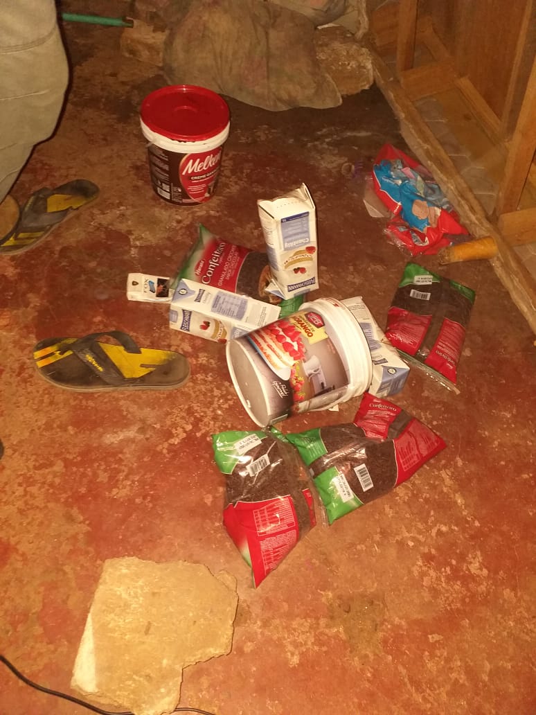 Com informações obtidas dos possíveis suspeitos do furto a equipe policial foi até a residência de AILTON ASPIRES BENITES – vulgo “Catito” que está sob monitoramento eletrônico há seis dias e, encontrou em seu quintal quase toda a mercadoria furtada e um carrinho de mão utilizado para descarregar os produtos. No interior da residência de “Catito” também foi encontrada uma parte da mercadoria sob sua cama.