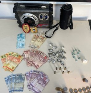 Além da motocicleta oriunda de crime, no local foram encontradas diversas porções de maconha e “trouxinhas” de pasta-base de cocaína, separadas e acondicionadas para comercialização. Também foram encontrados no local, papel-filme e grande quantidade de dinheiro, em notas variadas, confirmando a prática da traficância pelos envolvidos.