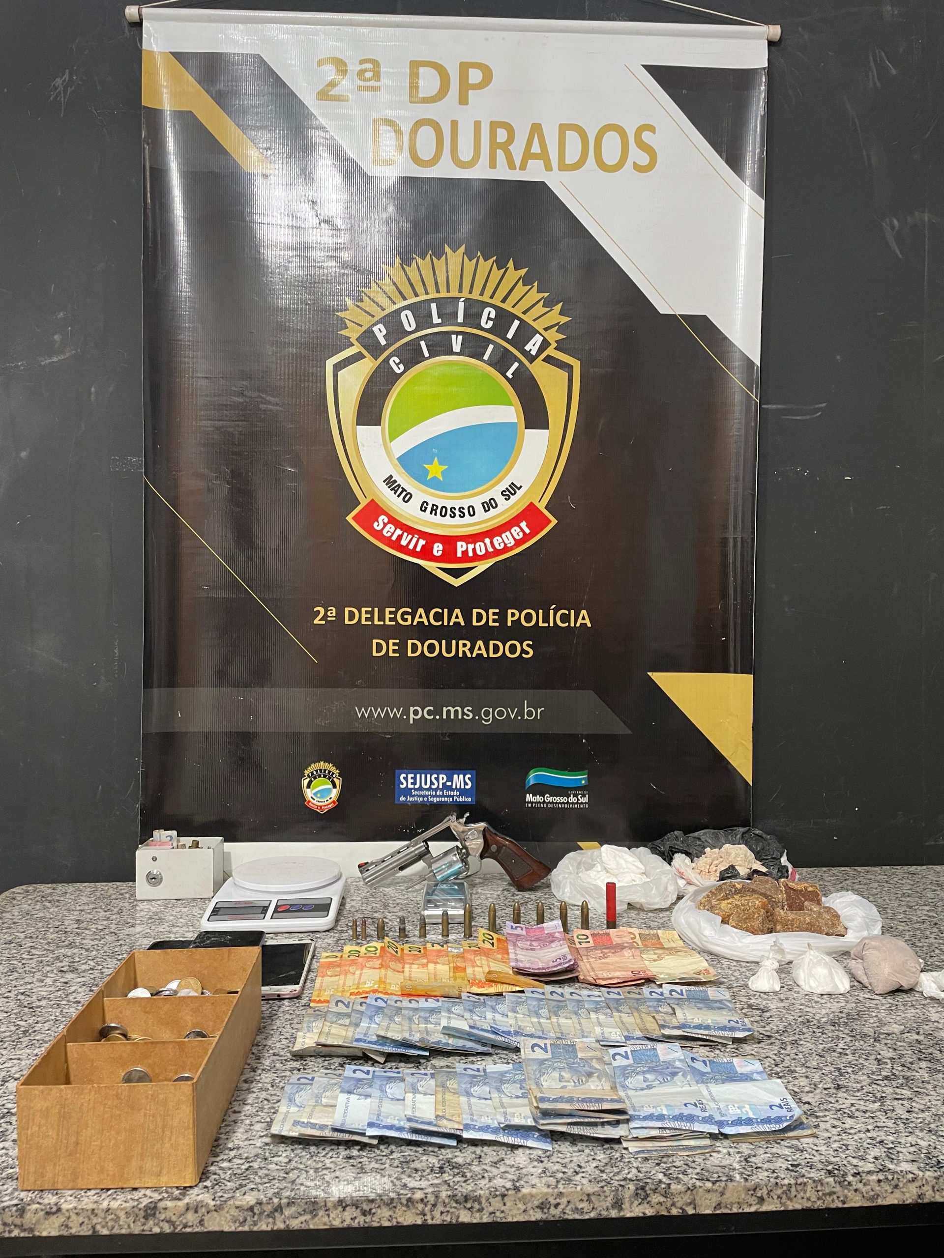 No desdobramento de uma operação policial, nesta terça-feira (02/04), a 2ª Delegacia de Polícia Civil de Dourados efetuou a prisão em flagrante de um homem – J.C.S. (32) e uma mulher – C.R.A. (20), por tráfico de drogas e posse ilegal de arma de fogo, no bairro Jóquei Clube, em Dourados-MS.