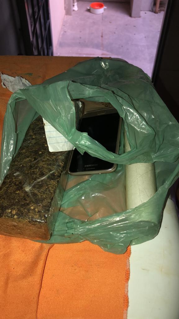 No imóvel foi encontrado quatro aparelhos celulares, uma balança de precisão, um rolo plástico para embalar drogas, anotações da contabilidade do comércio de drogas, uma porção pequena de maconha e um tablete de maconha, que submetido a pesagem totalizou 590,40 gramas.