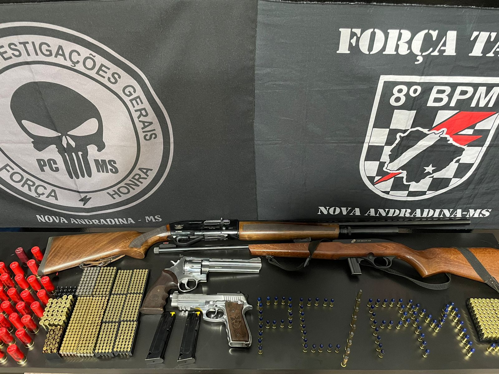 Em uma atuação conjunta, a Delegacia Polícia Civil de Nova Andradina e a Força Tática da Polícia Militar conseguiram recuperar diversas armas de fogo e munições que haviam sido furtadas no dia 9 de setembro de 2023, no município. Após o registro da ocorrência, as equipes policiais conseguiram rastrear o paradeiro das armas, levando à identificação dos suspeitos e à recuperação do armamento.