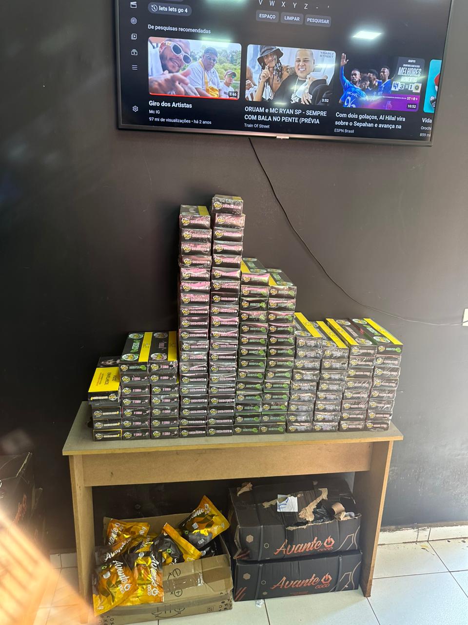 Também durante a investigação, os policiais constataram, em outro espaço no mesmo endereço, o funcionamento de uma tabacaria com comercialização de produtos proibidos, tais como cigarros eletrônicos e essências de origem estrangeira ou vencidas. Com o apoio da DECON ( Delegacia Especializada de Repressão aos Crimes Contra as Relações de Consumo ), foi dada voz de prisão em flagrante ao responsável pela tabacaria.