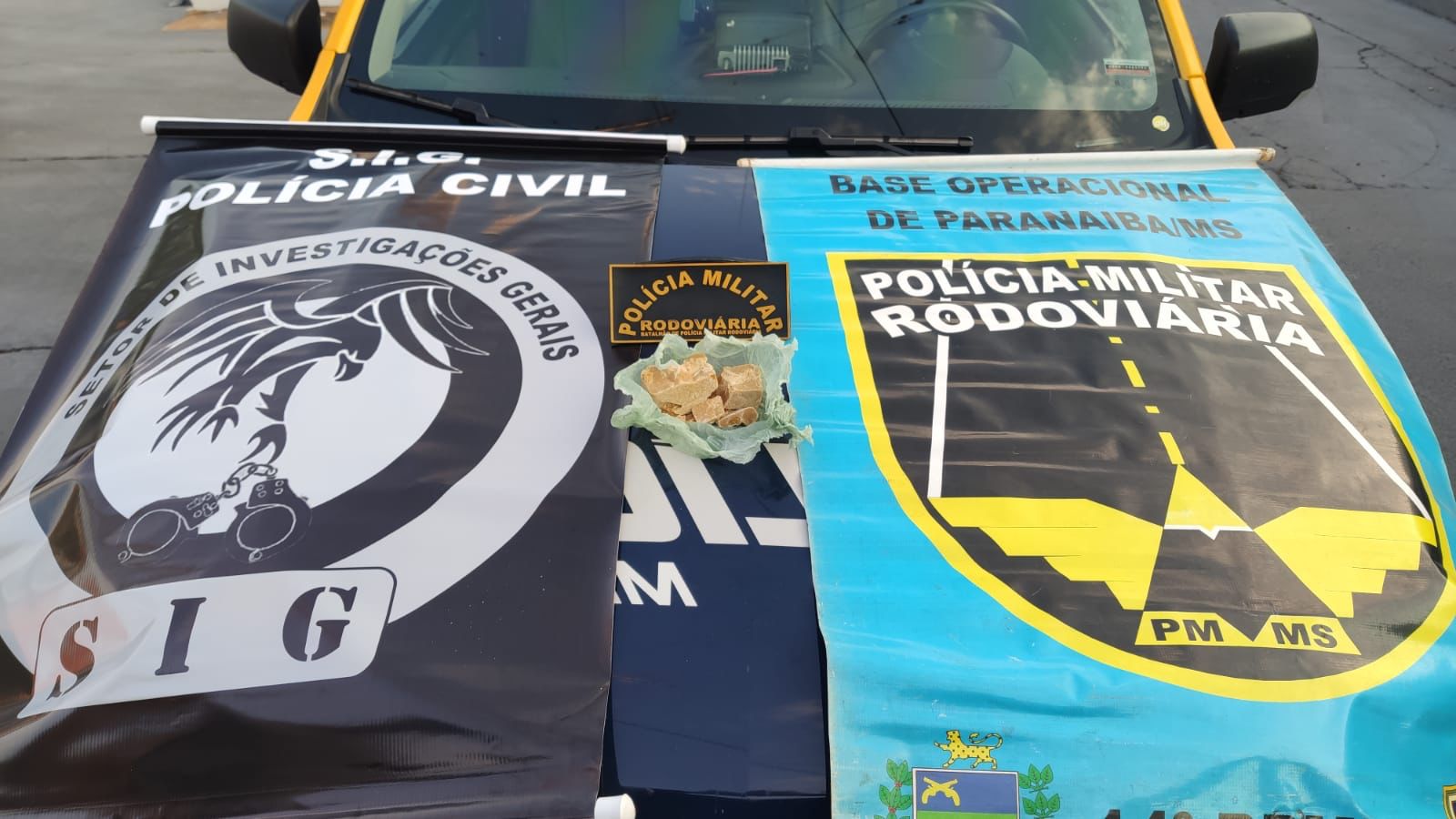 A Polícia Civil e a Polícia Militar, na manhã deste sábado (12), receberam informações de que um indivíduo estaria transportando entorpecentes da cidade de Campo Grande-MS, tendo como destino o município de Paranaíba-MS. Verificada a procedência das informações, foi dado início a uma operação conjunta entre as forças policiais, sendo possível apurar que o indivíduo de 28 anos faria o trajeto de ônibus até Paranaíba. Nesse sentido, as equipes policiais realizaram acompanhamento do ônibus até seu destino final e, após o desembarque dos passageiros, foi possível abordar o indivíduo, o qual não possuía bagagens e se portava de forma atípica, demonstrando bastante nervosismo.