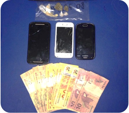 Ainda na cozinha da casa, localizaram um invólucro de “crack” contendo várias “paradinhas” que estavam sobre um pote plástico, além de R$280,00, um aparelho celular e embalagens plásticas utilizadas para embalar e comercializar entorpecentes.