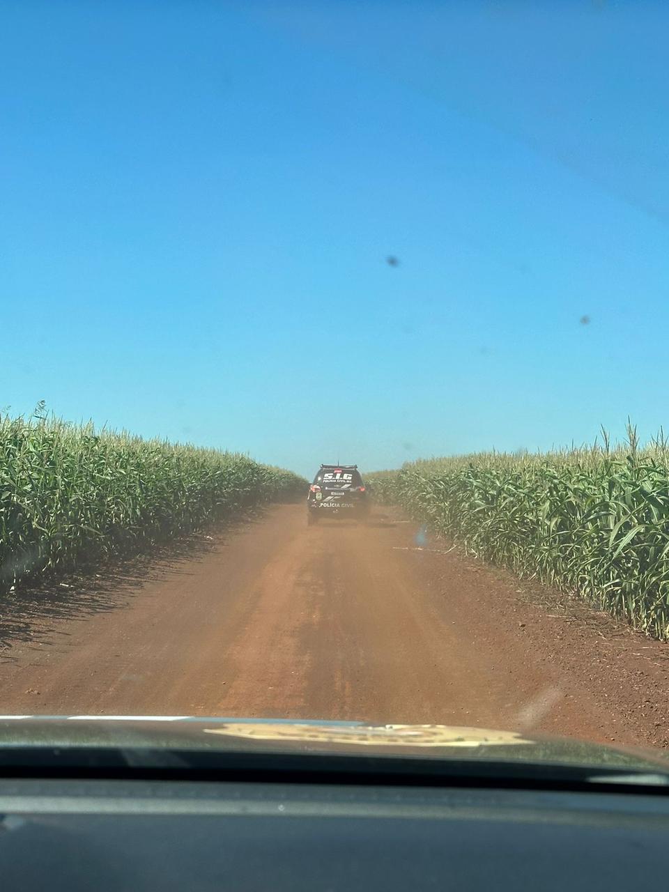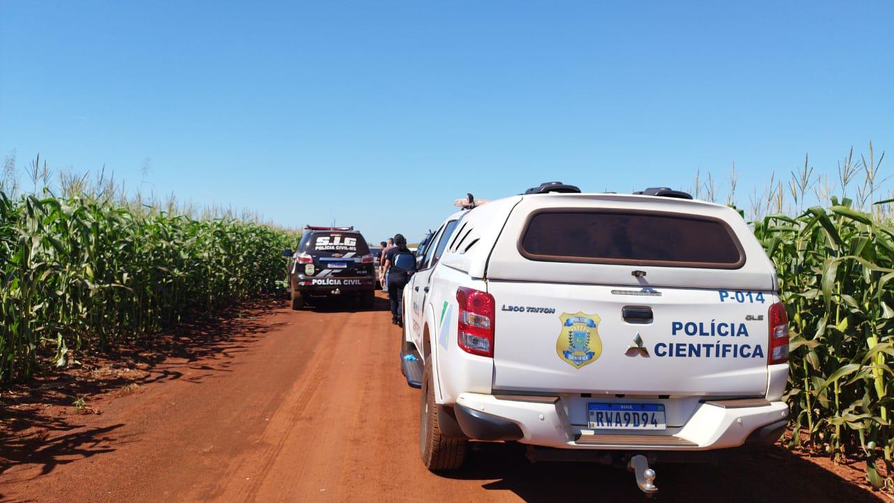 Na apuração, foi informado aos policiais que a arma de fogo e dinheiro da vítima tinham sido subtraídos e por isso o caso passou a ser tratado como latrocínio (roubo seguido de morte). Durante as investigações, ainda na propriedade rural, os policiais visualizaram a marca de um veículo que teria se escondido na plantação próximo ao local do crime o que reforçou a ideia de crime patrimonial.