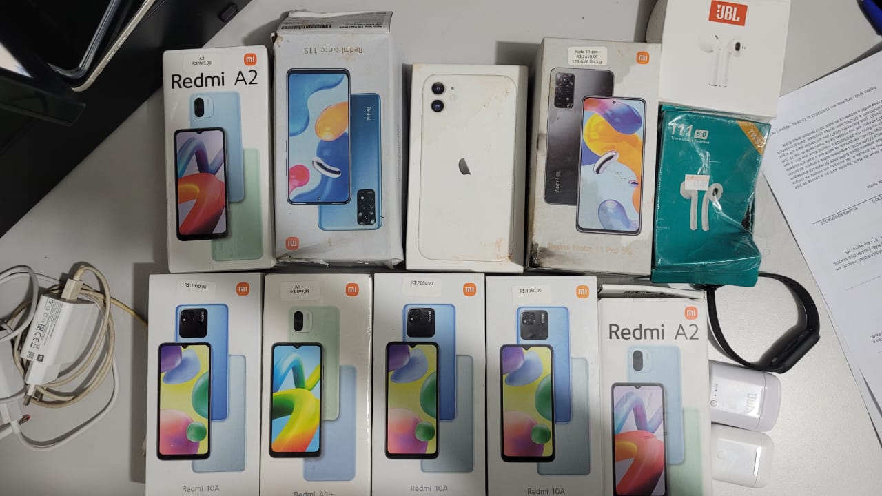 Dessa forma, foram encontrados três aparelhos celulares em posse do casal, enquanto os outros aparelhos subtraídos (6) e demais objetos foram encontrados junto com o autor do furto, que tentava fugir da cidade. As vestes usadas no crime foram incineradas pelos envolvidos, porém encontradas nos fundos de uma residência.