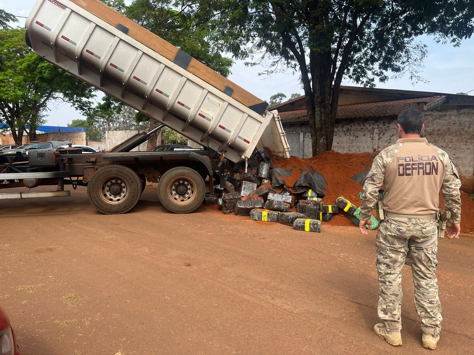 As investigações sobre o empresário iniciaram-se no mês de julho de 2022 e posteriormente foi robustecida pela apreensão de 5,620 t de MACONHA, no dia 05 de setembro de 2022, por volta das 11h25, no município de Dourados/MS, numa operação conjunta desenvolvida pela DEFRON e pelo Departamento de Operações de Fronteira (DOF). Nesta ocasião um homem de 46 anos de idade conduzia o caminhão “caçamba”, marca/modelo Mercedes Benz/L 1620, na cor branca, carregado aparentemente com areia, no entanto, embaixo de uma fina camada do material estava o entorpecente.