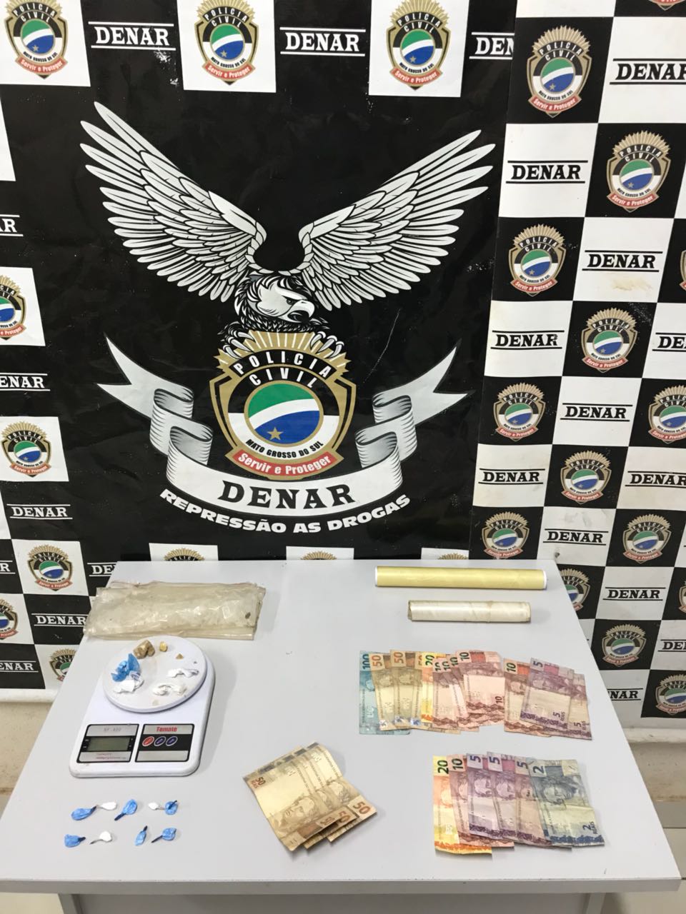 CAMPO GRANDE (MS): Na tarde desta quarta-feira a DENAR – Delegacia Especializada de Repressão ao Narcotráfico prendeu em flagrante, um jovem e seu avô pelos crimes de tráfico de drogas e associação para o tráfico. Os suspeitos foram detidos após denúncia anônima, que indicava o comércio de drogas em imóvel situado na Rua Albino, Bairro Aimoré.