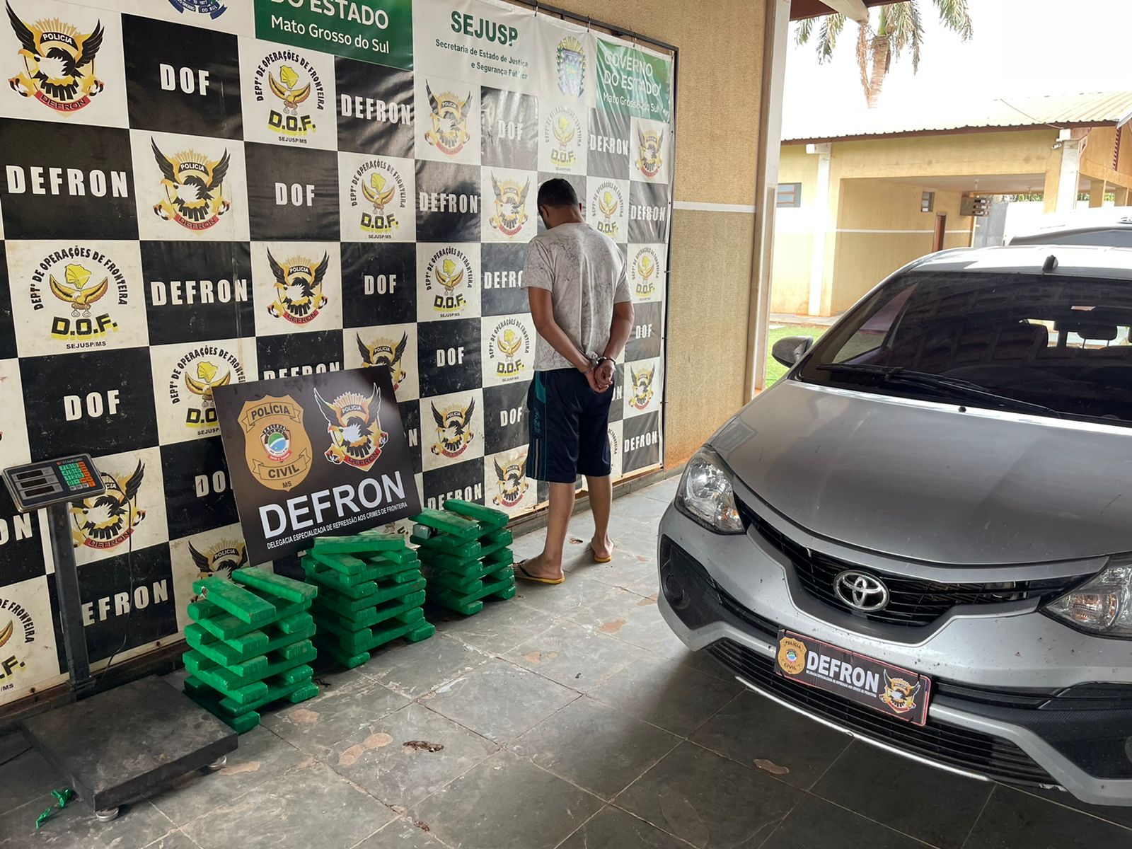 Ponta Porã (MS): Policiais civis da Delegacia de Repressão aos Crimes de Fronteira – Defron, efetuaram a prisão de um receptador de automóveis roubados, recuperaram o veículo e apreenderam 54 quilos de maconha, em Ponta Porã, nesta quinta-feira (9). As investigações apontavam que indivíduo, natural de Minas Gerais, que cumpriu pena por tráfico de drogas em Dourados e se encontrava com mandado de prisão em aberto, passou a receptar carros roubados, os quais eram trocados por drogas em Ponta Porã.
