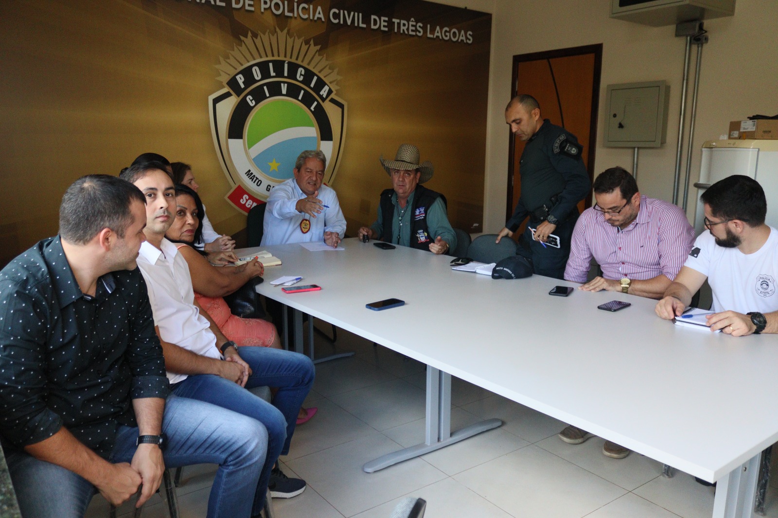 Tal reunião, também, teve por finalidade apresentar os responsáveis pela segurança pública do município, seja pelas Delegacias de Polícia de área ou Batalhão da Polícia Militar, responsáveis pelo policiamento onde estão instaladas as escolas.
