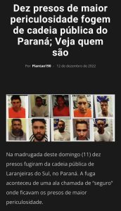 Ação conjunta da Polícia Civil, por intermédio da Delegacia de Mundo Novo, e da Polícia Rodoviária Federal (PRF) culminou na prisão em flagrante de três indivíduos que haviam se evadido, juntamente com outros sete criminosos, do sistema carcerário de Laranjeiras do Sul-PR, no último domingo, 11/12. A recaptura foi realizada ontem, 14/12, em Mundo Novo-MS.