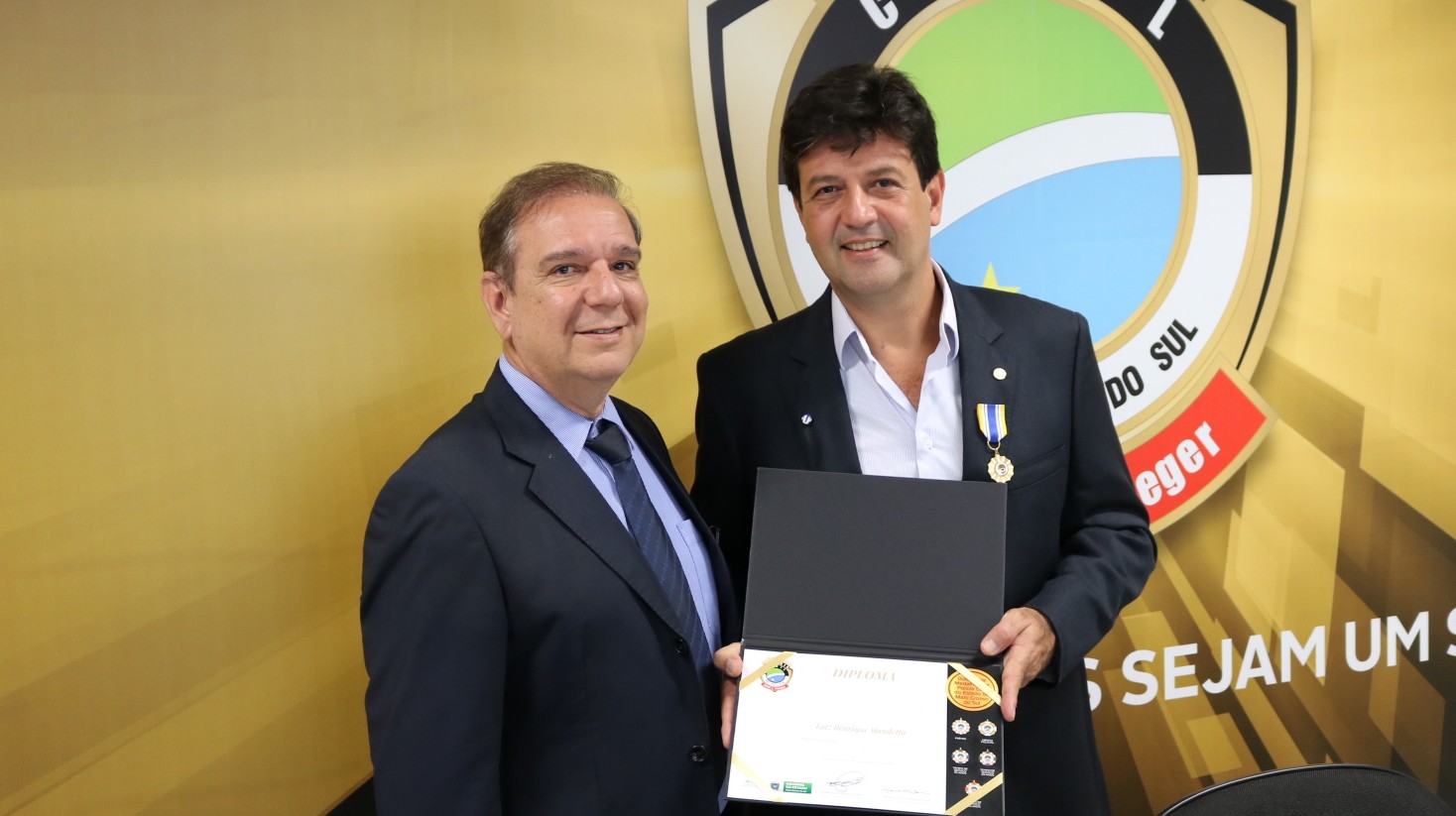 A cerimônia de entrega das medalhas aconteceu no dia 05/12/2018, às 09h, na Câmara dos Vereadores de Campo Grande, e homenageou cerca de 140 pessoas. Como o futuro Ministro, Luiz Henrique Mandetta não pôde comparecer, devido a conflitos na agenda, foi recebido hoje pelo Delegado Geral.