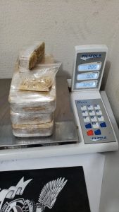 Que foram realizadas abordagens em JULIO CESAR e de PAULO EDUARDO os quais estariam em uma residência no bairro Universitário, nesta capital, local em que foram encontrados 3 (três) tabletes de 02 (duas) porções de pastas base de cocaína, pesando 3,250 kg (três quilos e duzentos e cinquenta gramas), e dentro de um freezer, foi encontrado 05 (cinco) tabletes e 17 (dezessete) porções de maconha, pesando 5,700 kg (cinco quilos e setecentos gramas), ainda na cozinha do imóvel foi encontrado 75 (setenta e cinco) micro pontos de LSD, além de balanças de precisão e vários celulares.