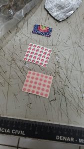 Que foram realizadas abordagens em JULIO CESAR e de PAULO EDUARDO os quais estariam em uma residência no bairro Universitário, nesta capital, local em que foram encontrados 3 (três) tabletes de 02 (duas) porções de pastas base de cocaína, pesando 3,250 kg (três quilos e duzentos e cinquenta gramas), e dentro de um freezer, foi encontrado 05 (cinco) tabletes e 17 (dezessete) porções de maconha, pesando 5,700 kg (cinco quilos e setecentos gramas), ainda na cozinha do imóvel foi encontrado 75 (setenta e cinco) micro pontos de LSD, além de balanças de precisão e vários celulares.