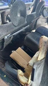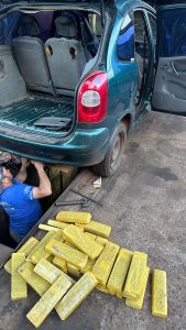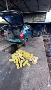 Em averiguações realizadas no interior do automóvel, foram encontrados, acondicionados nos bancos, entorpecente do tipo maconha. Foi solicitado que o carro fosse colocado em uma rampa, tendo sido encontrado um fundo falso no porta-malas e com a retirada de uma chapa de aço foi encontrado mais drogas, que após pesagem totalizaram 43,950kg, distribuídos em 66 tabletes.